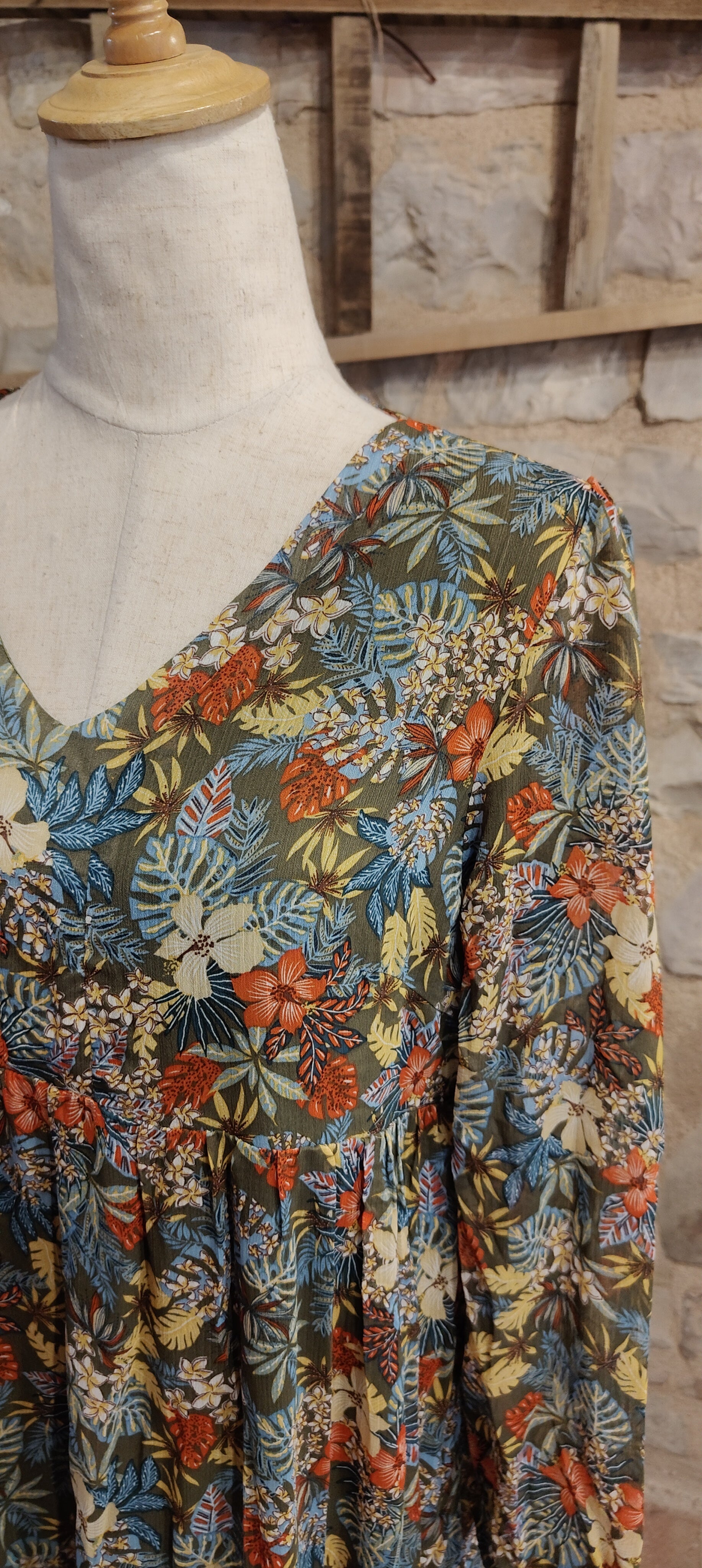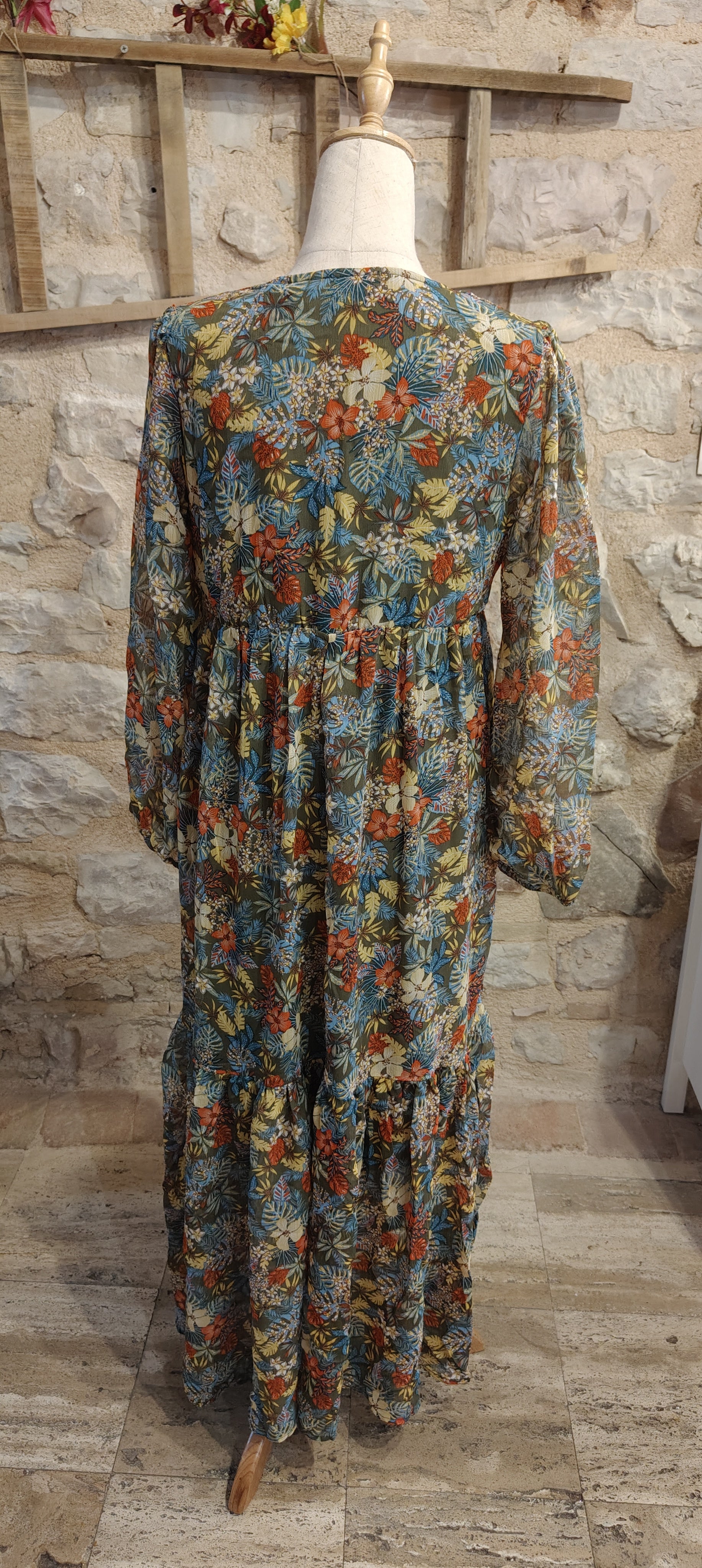 Abito stile boho a maniche lunghe, con tessuto velato e sottoveste