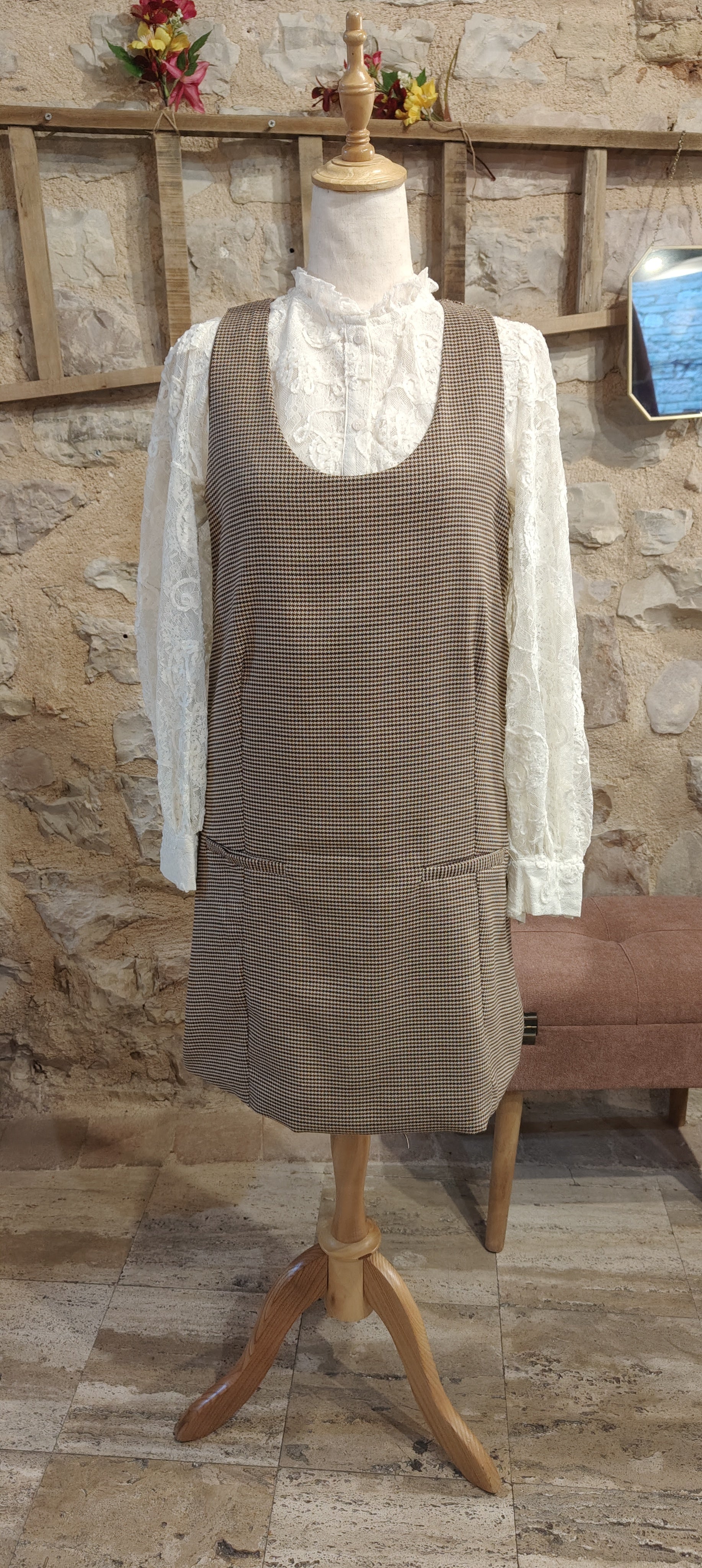 Abito smanicato con tasche finte, da indossare con sotto una camicia o una maglietta