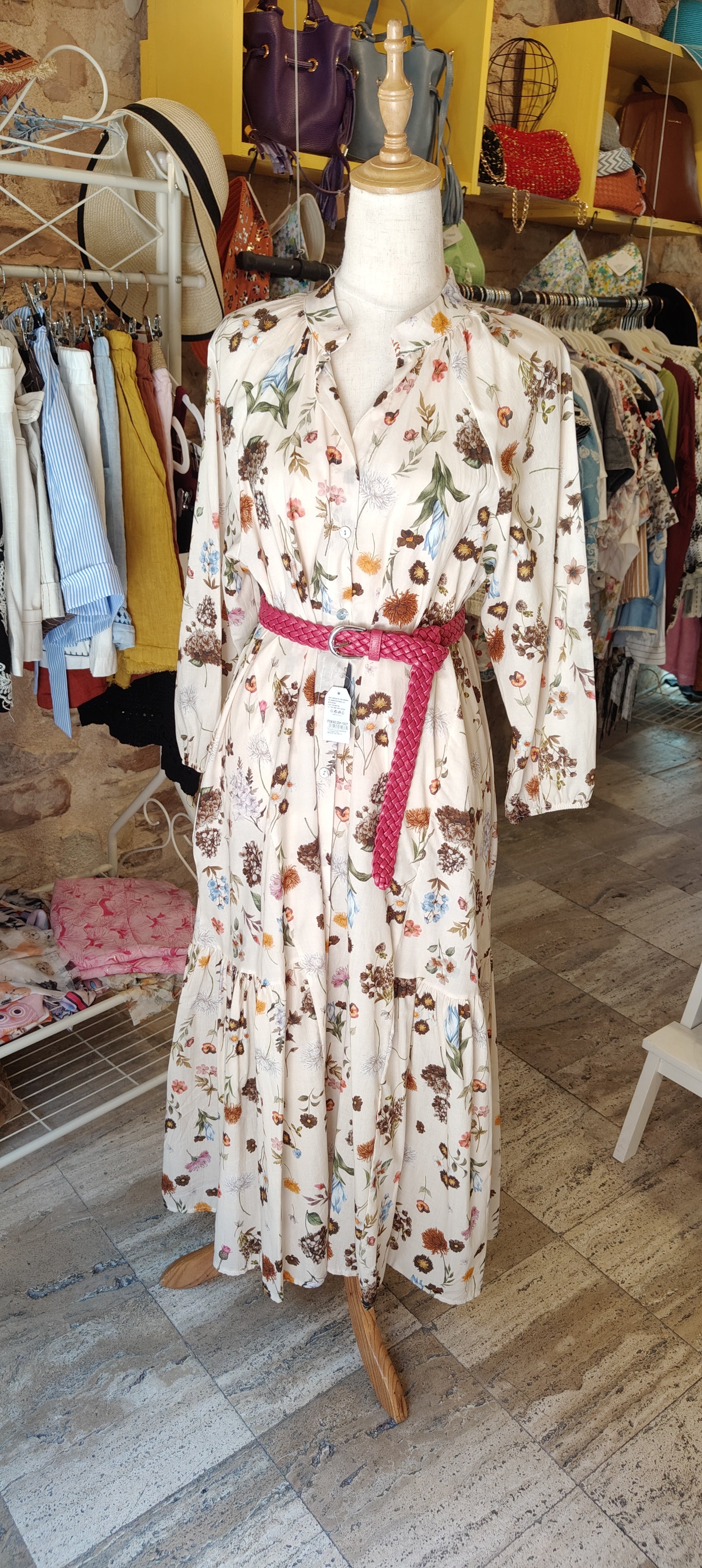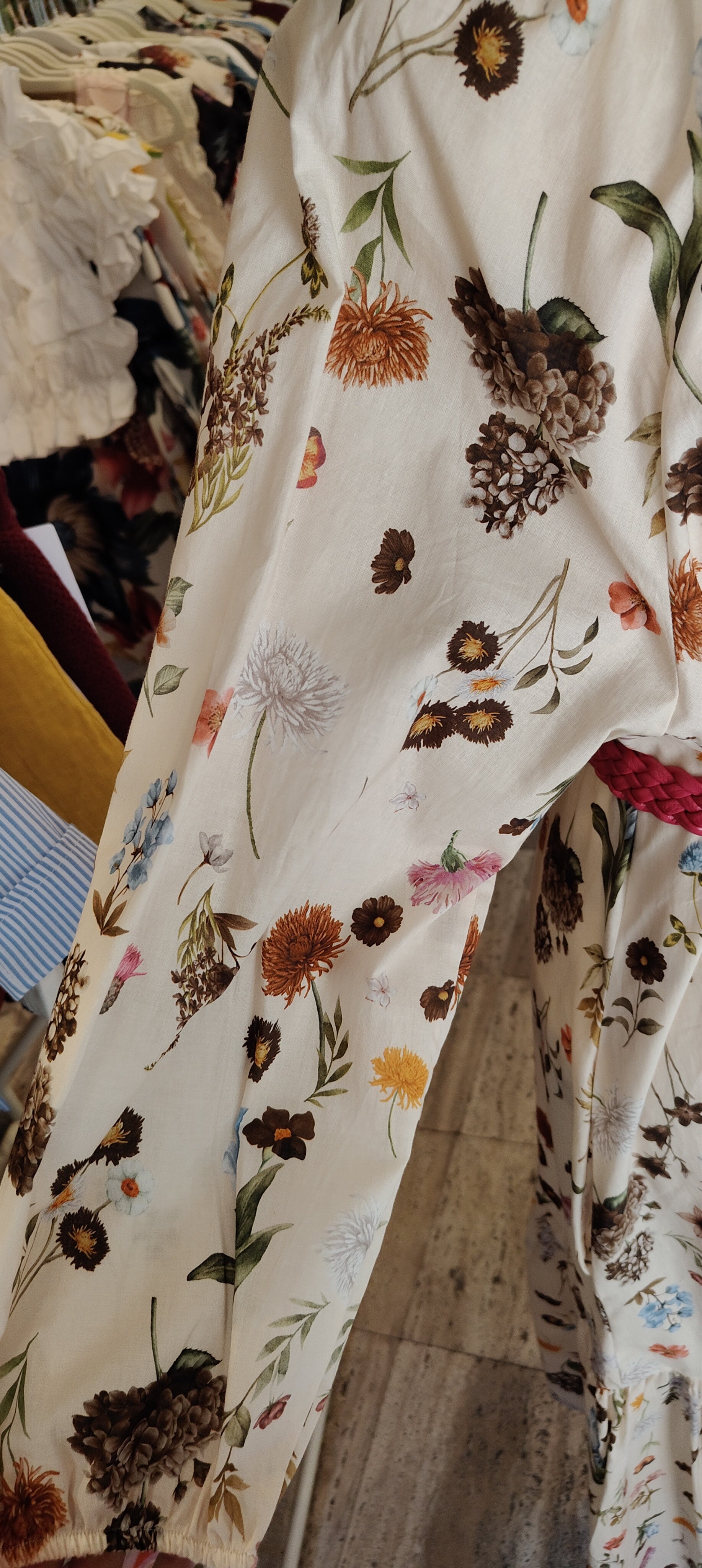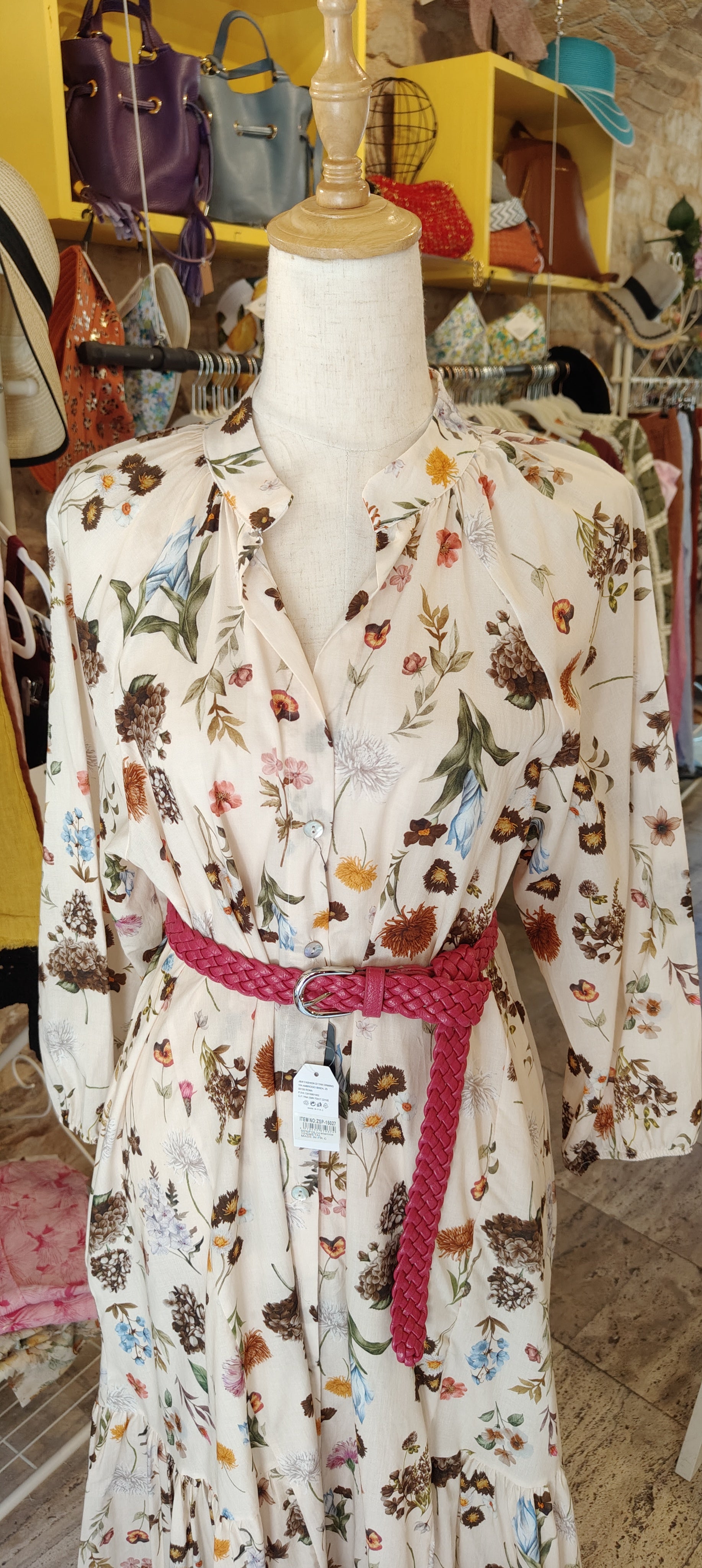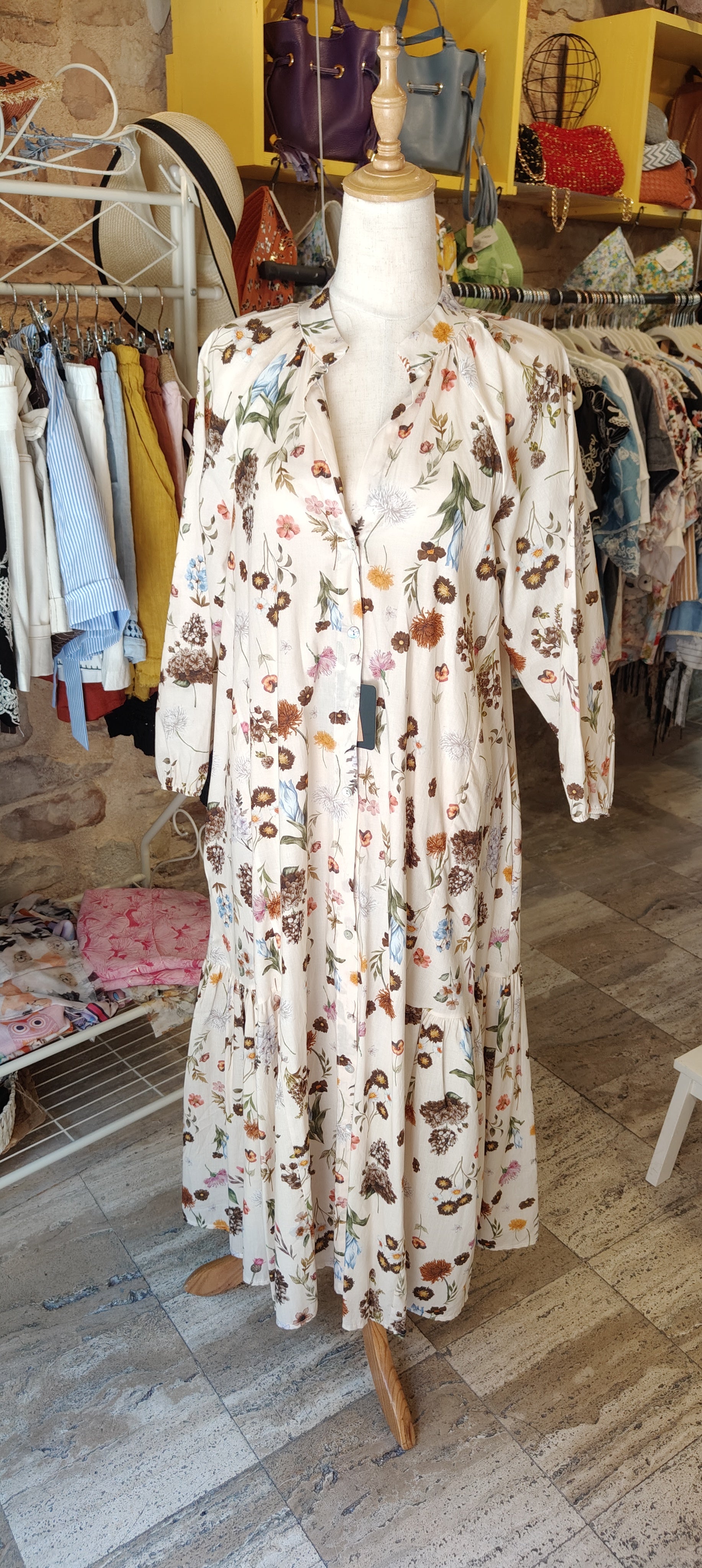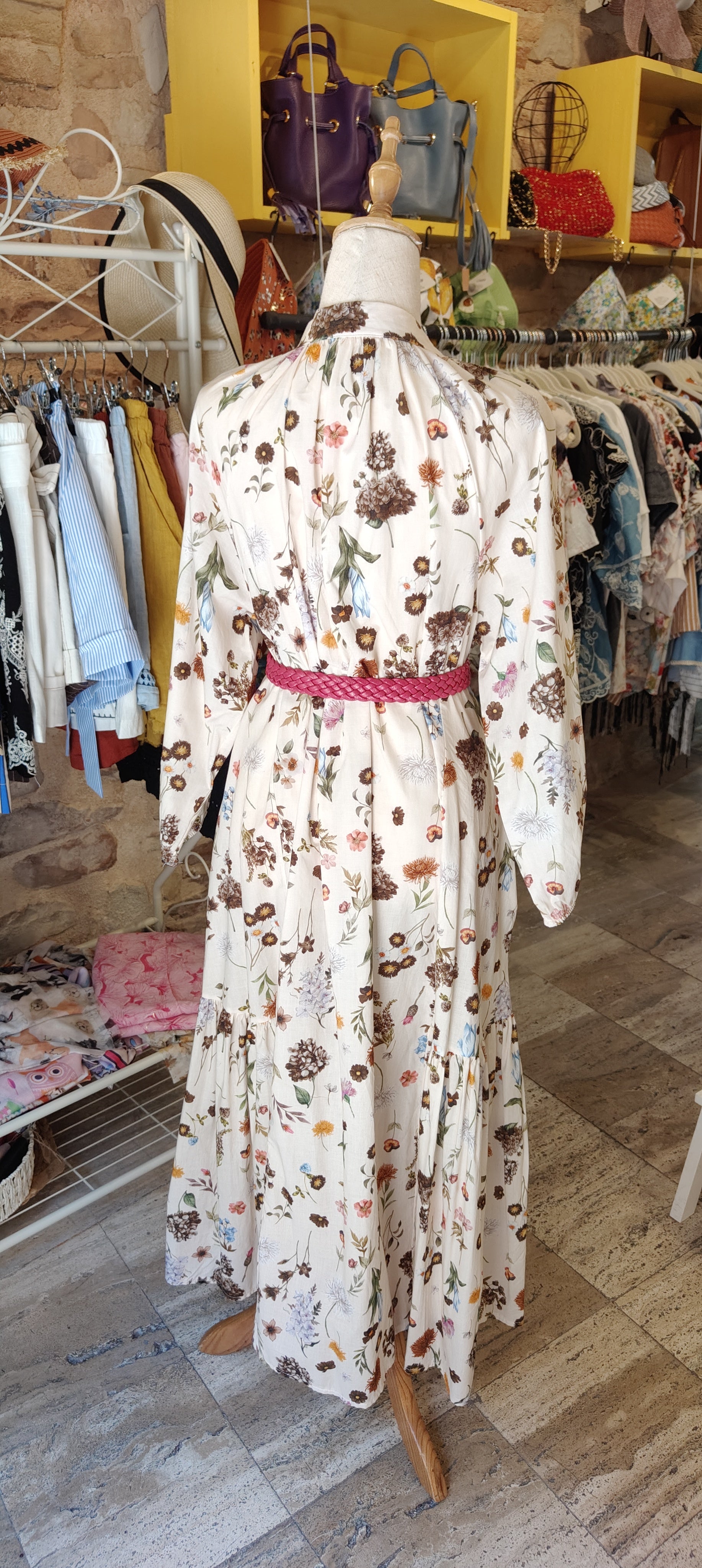 Abito in cotone molto ampio, regolabile con cintura (compresa). Manica 3/4 con elastico