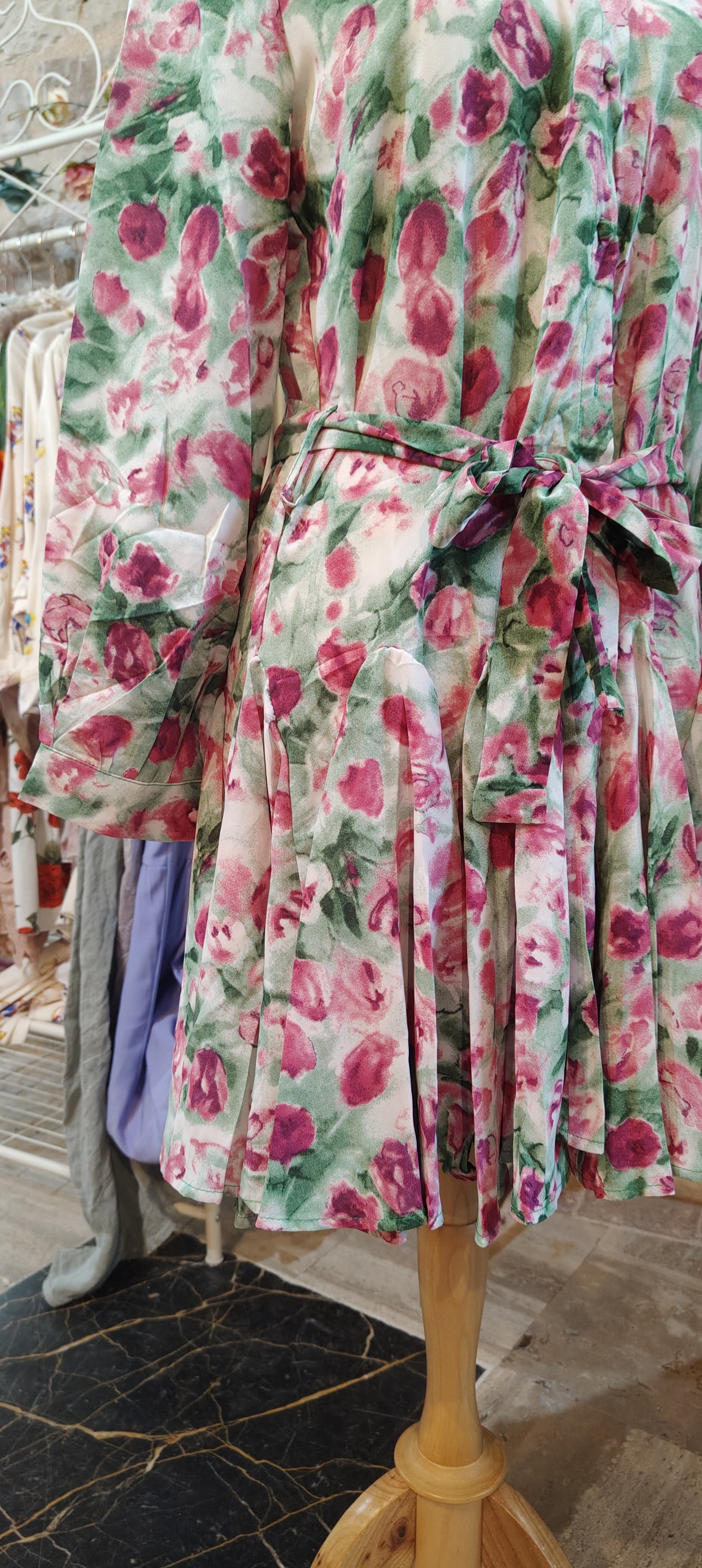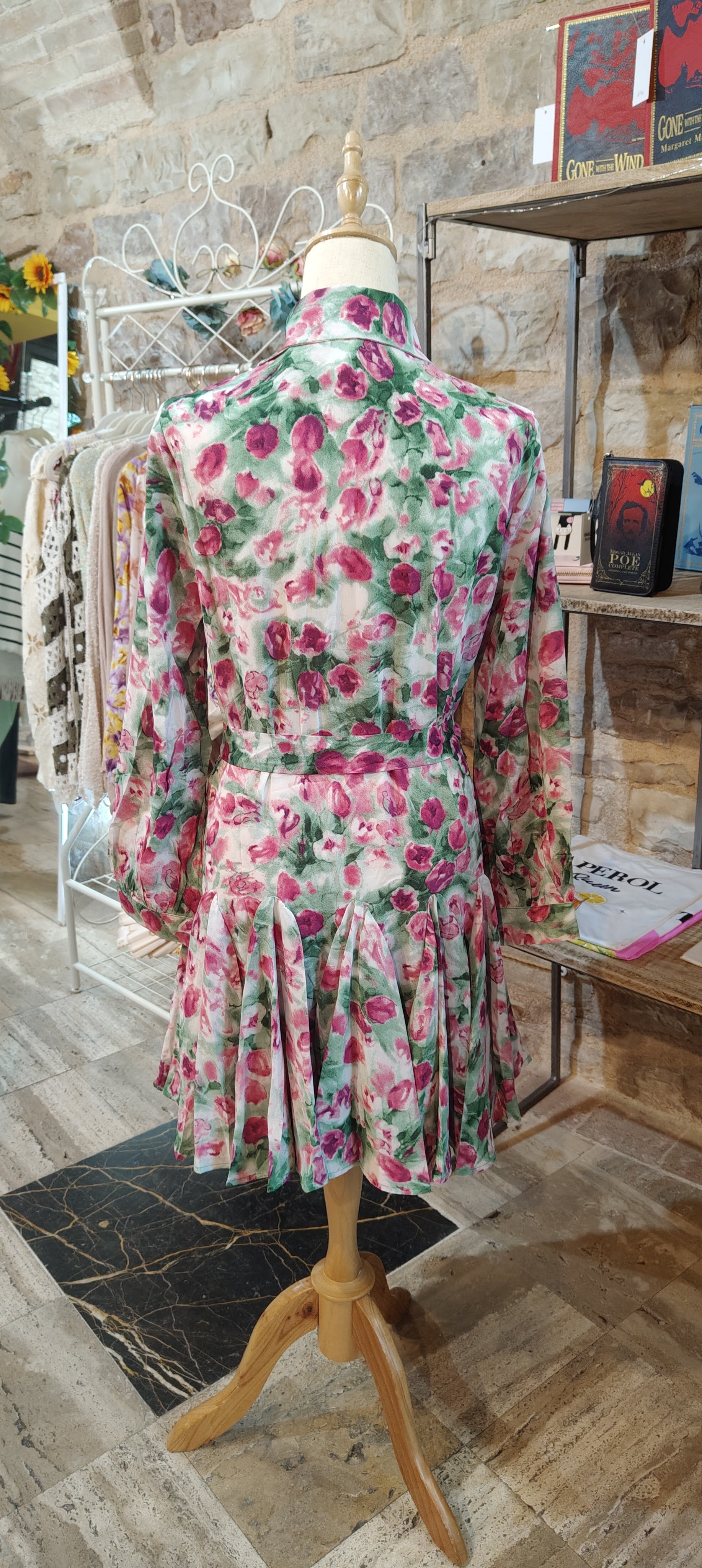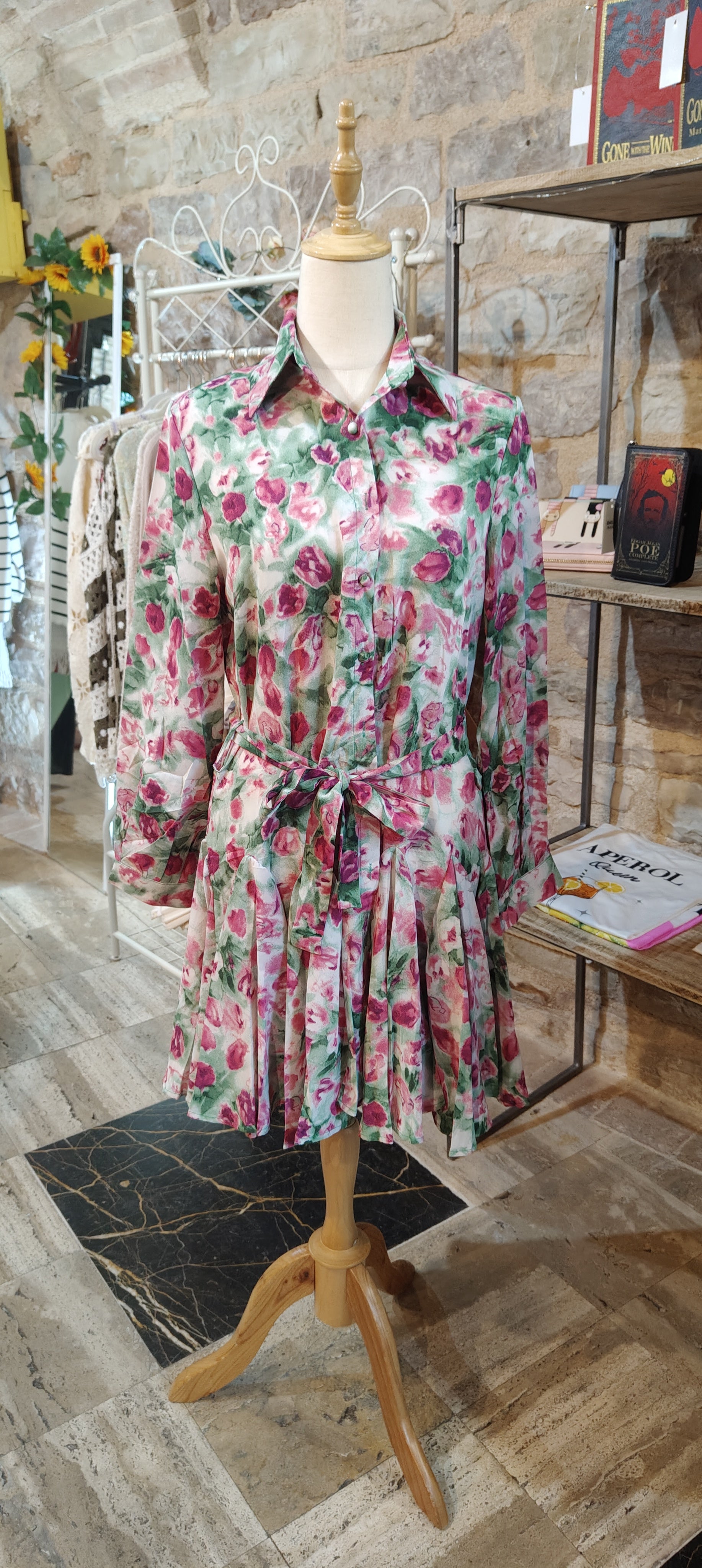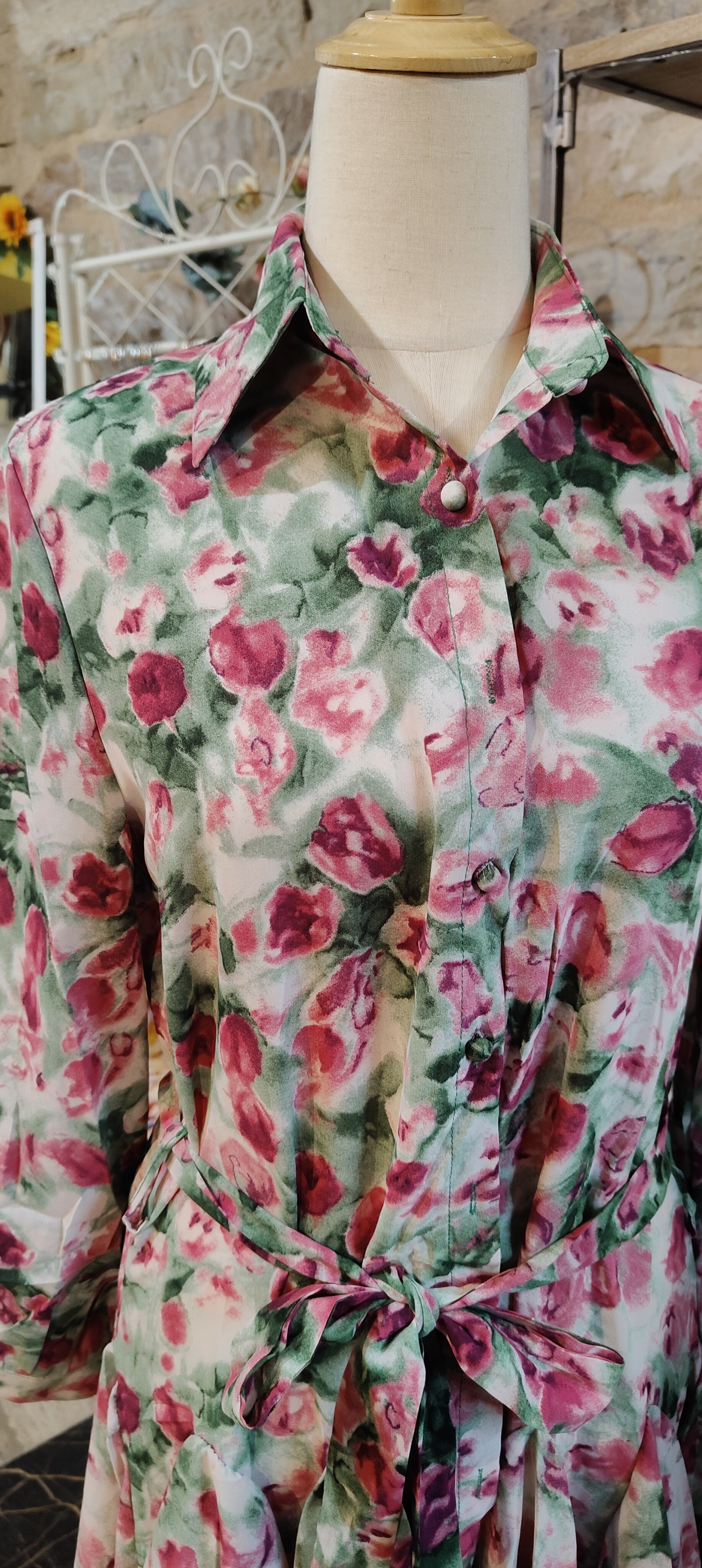Chemisier con cinta in tessuto, manica lunga. Lungo sopra il ginocchio.