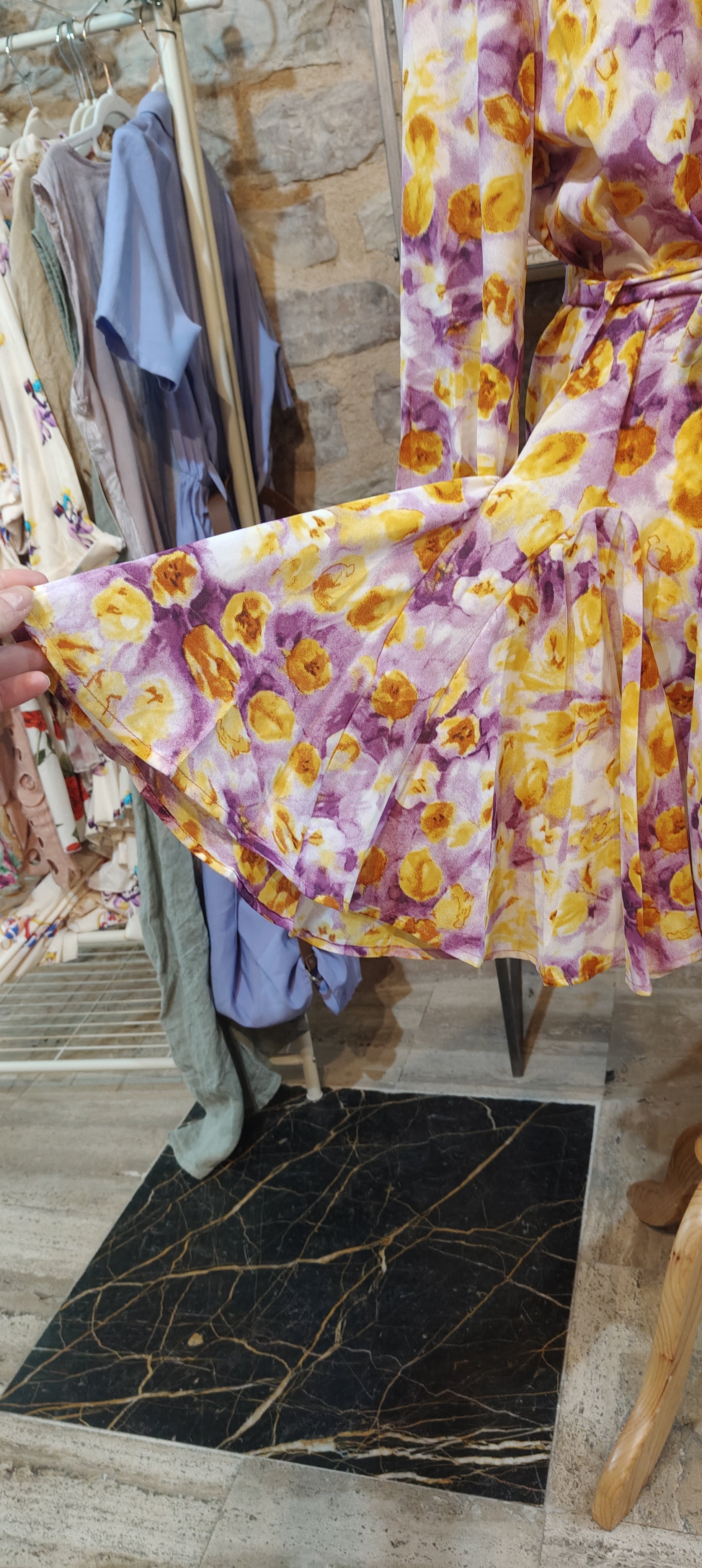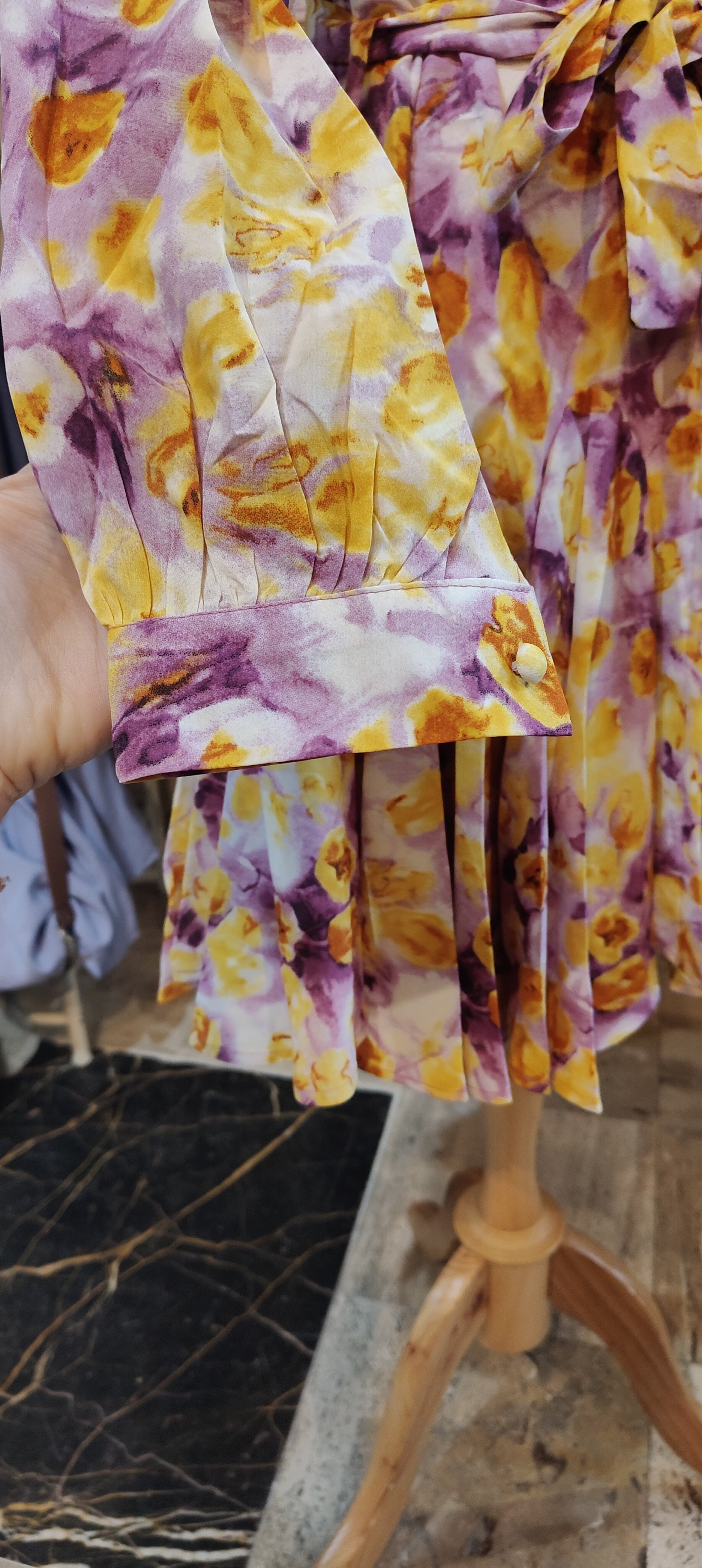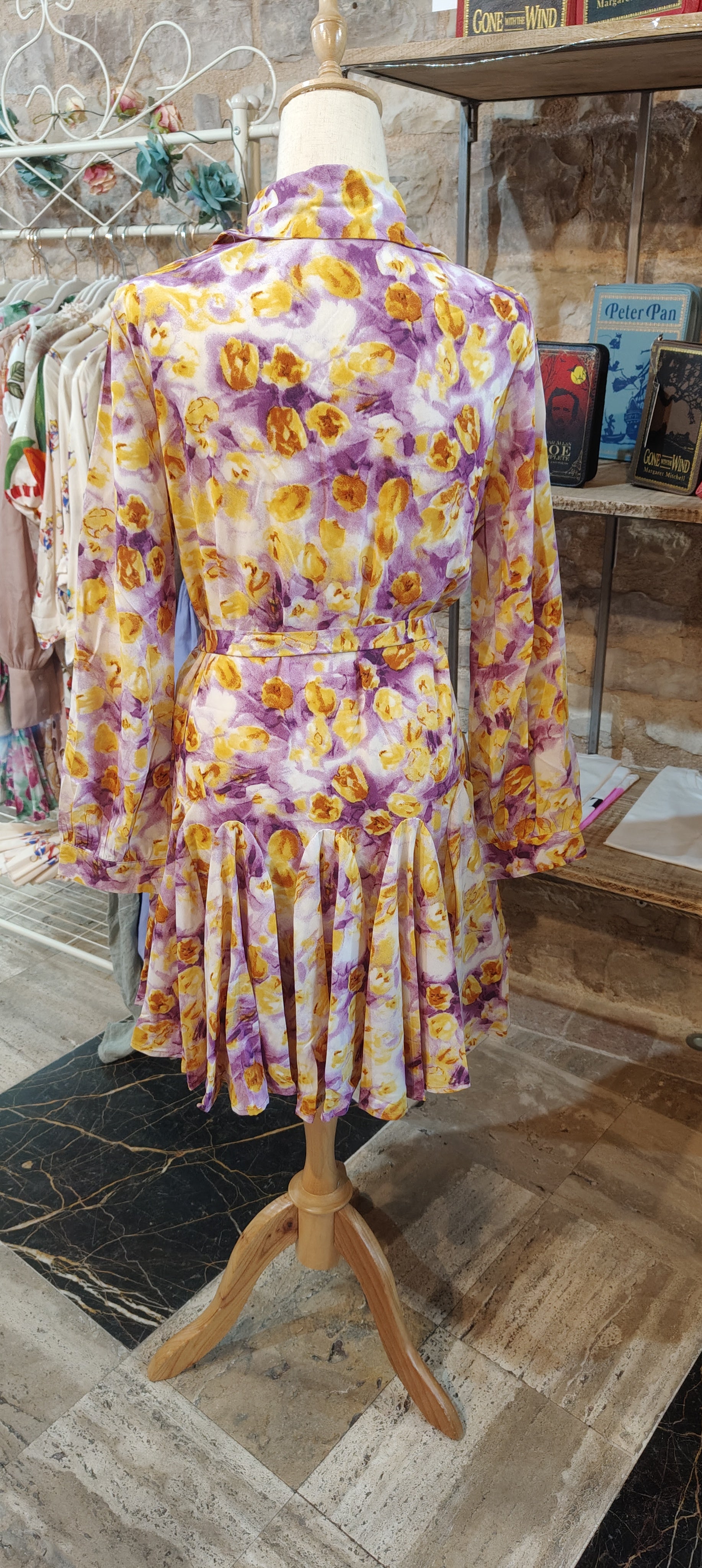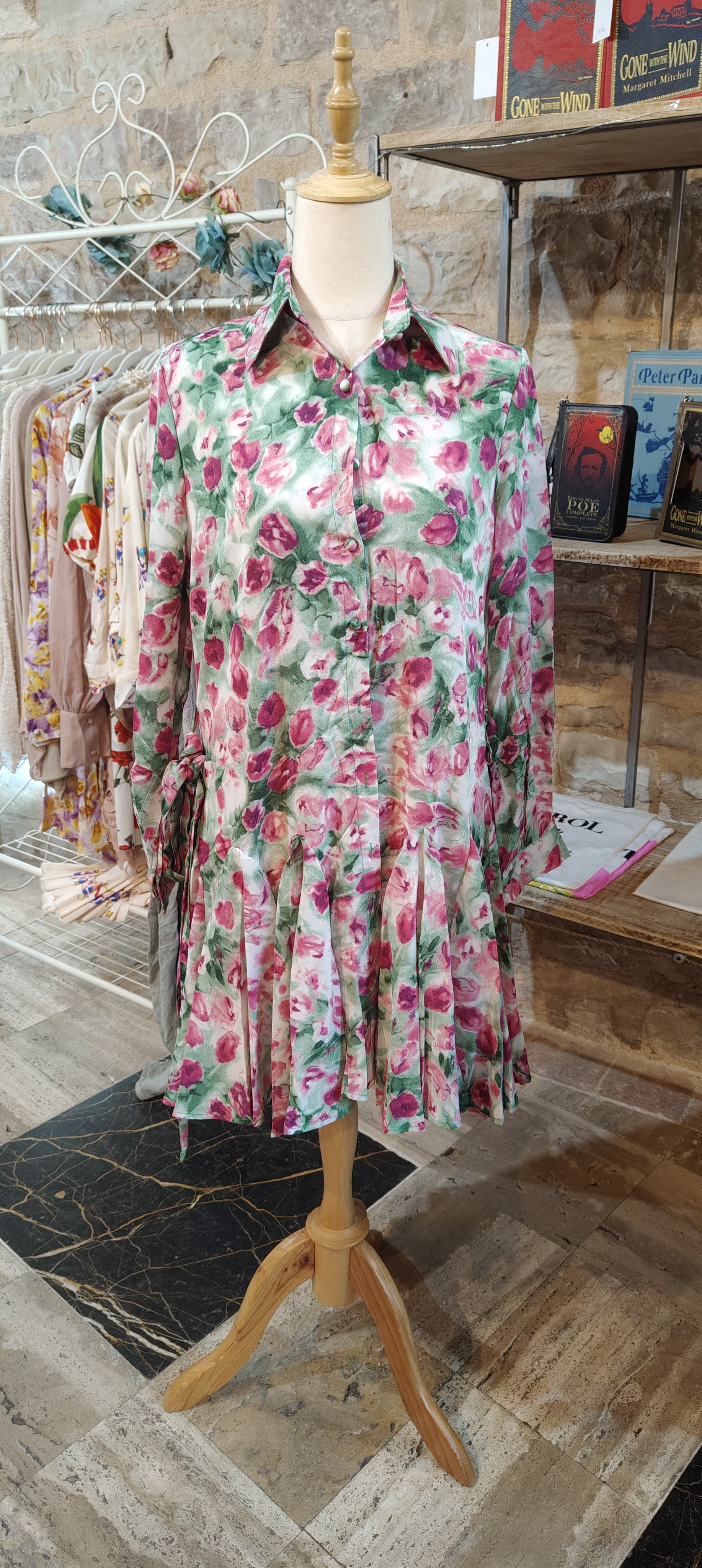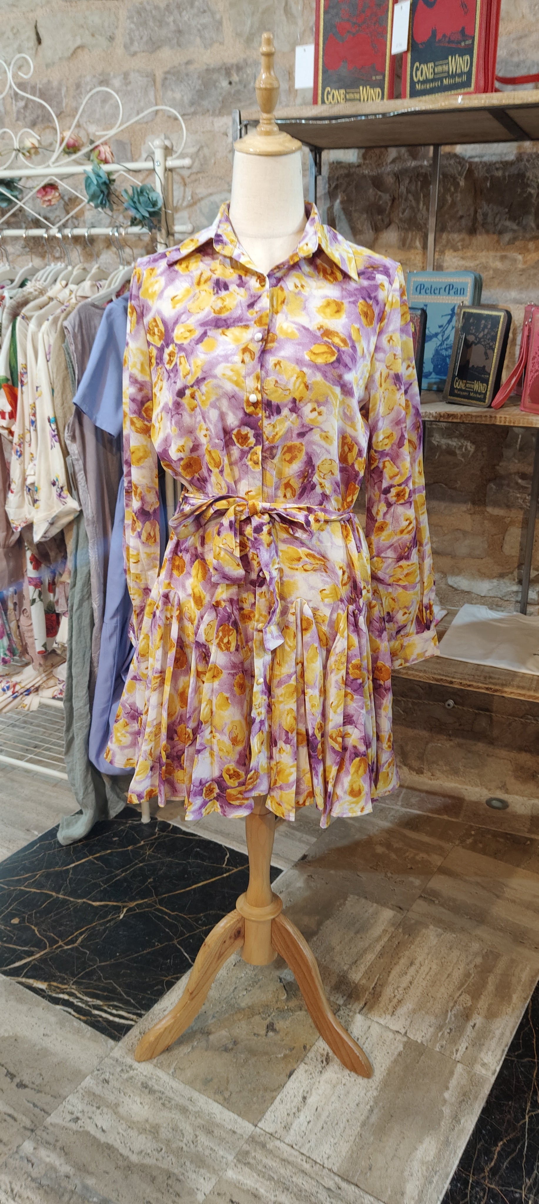 Chemisier con cinta in tessuto, manica lunga. Lungo sopra il ginocchio.