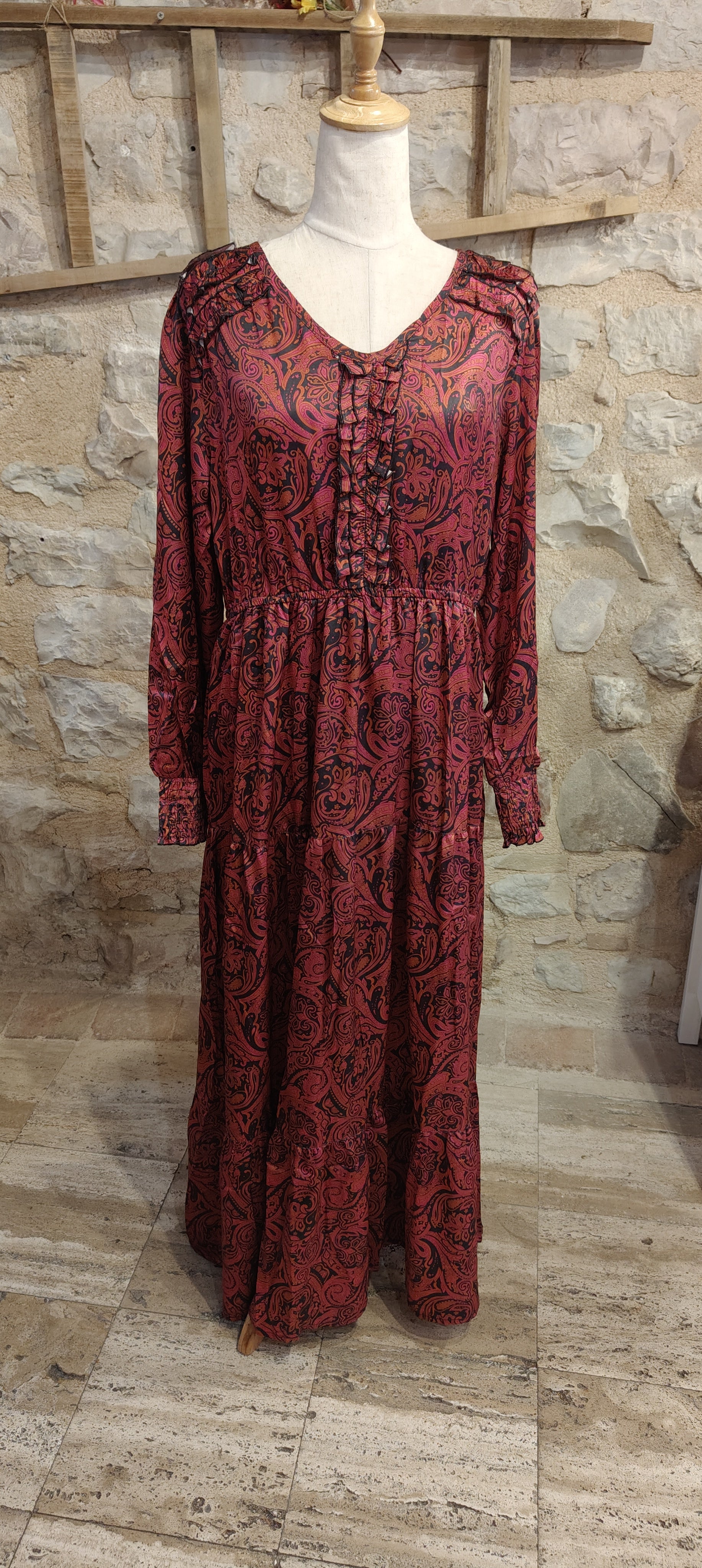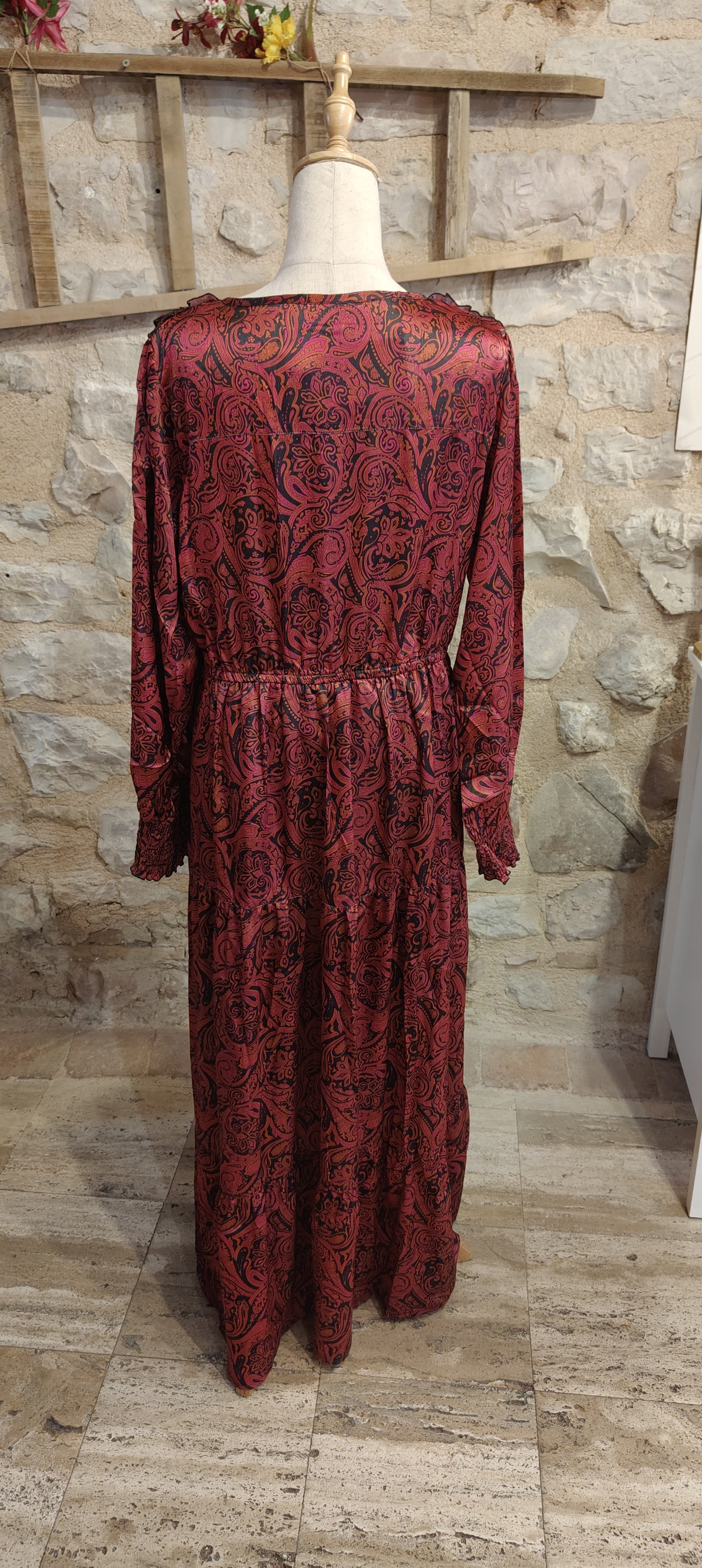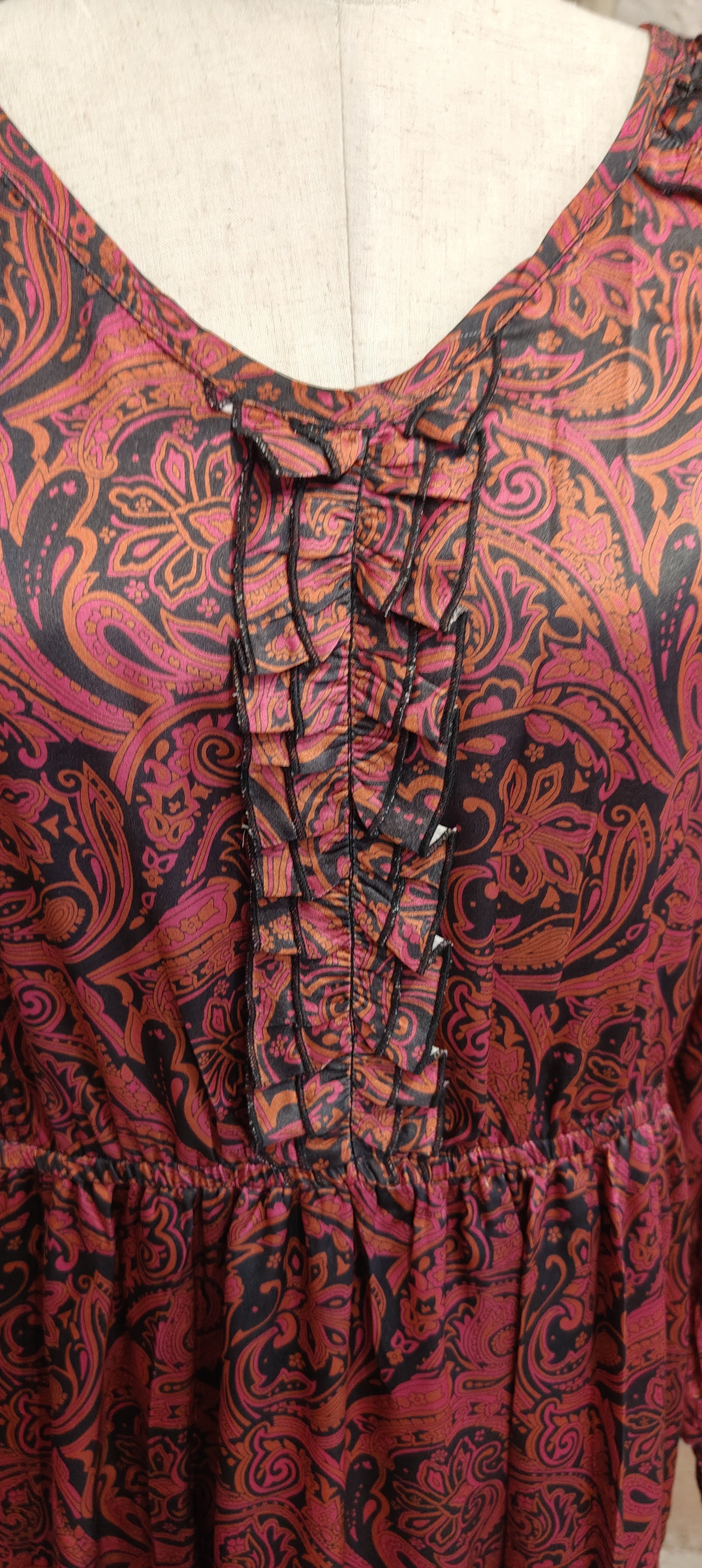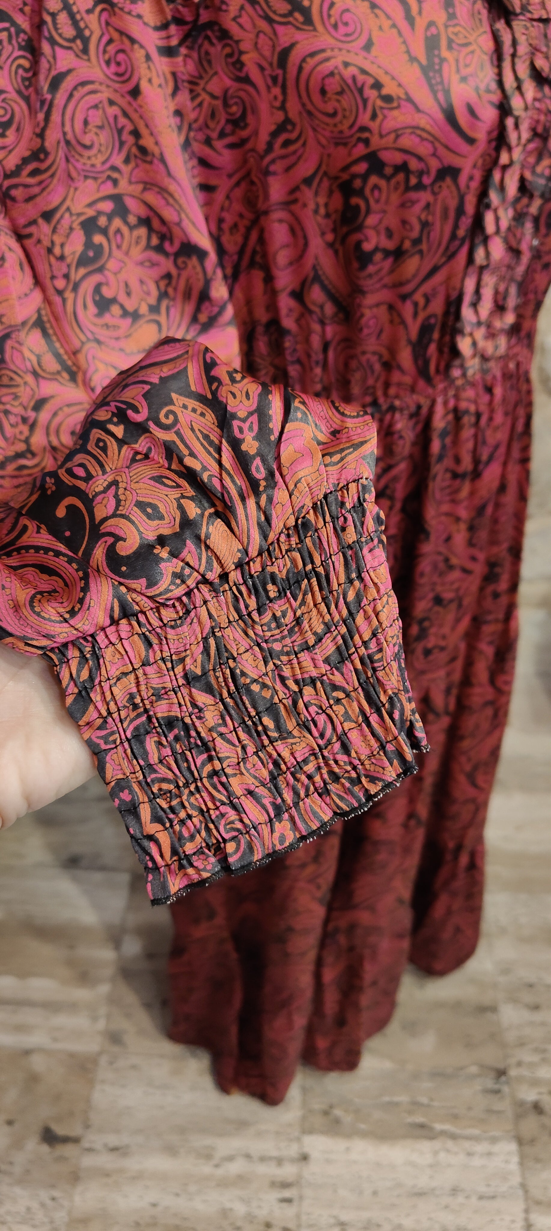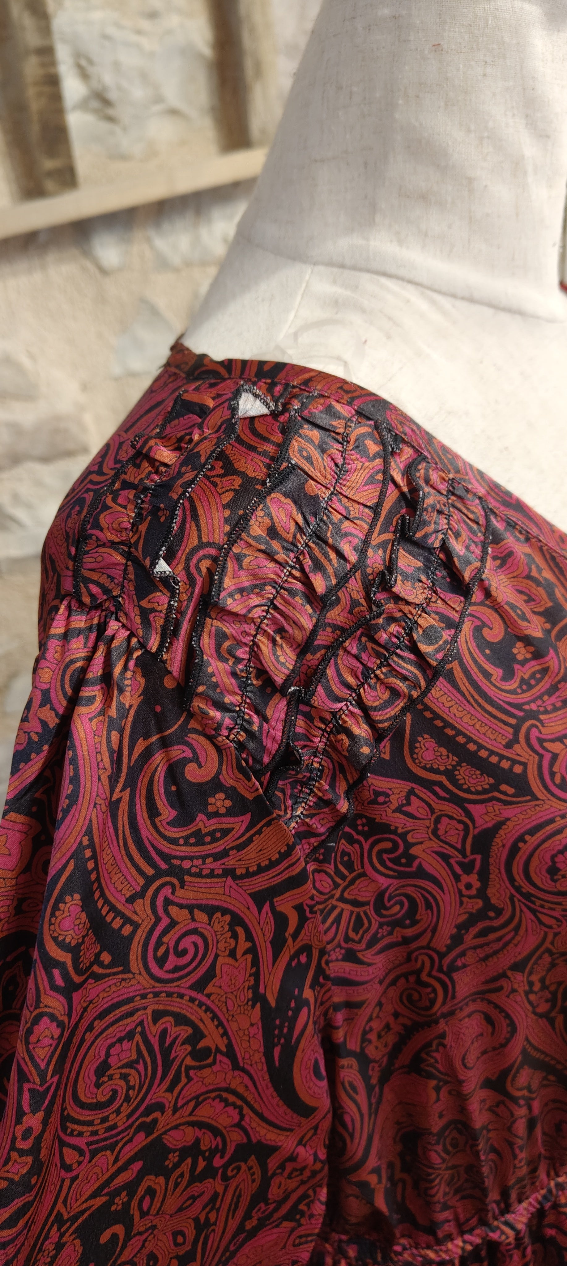 Abito in raso leggero, con rouges avanti e sulle spalle. Vestibilità morbida