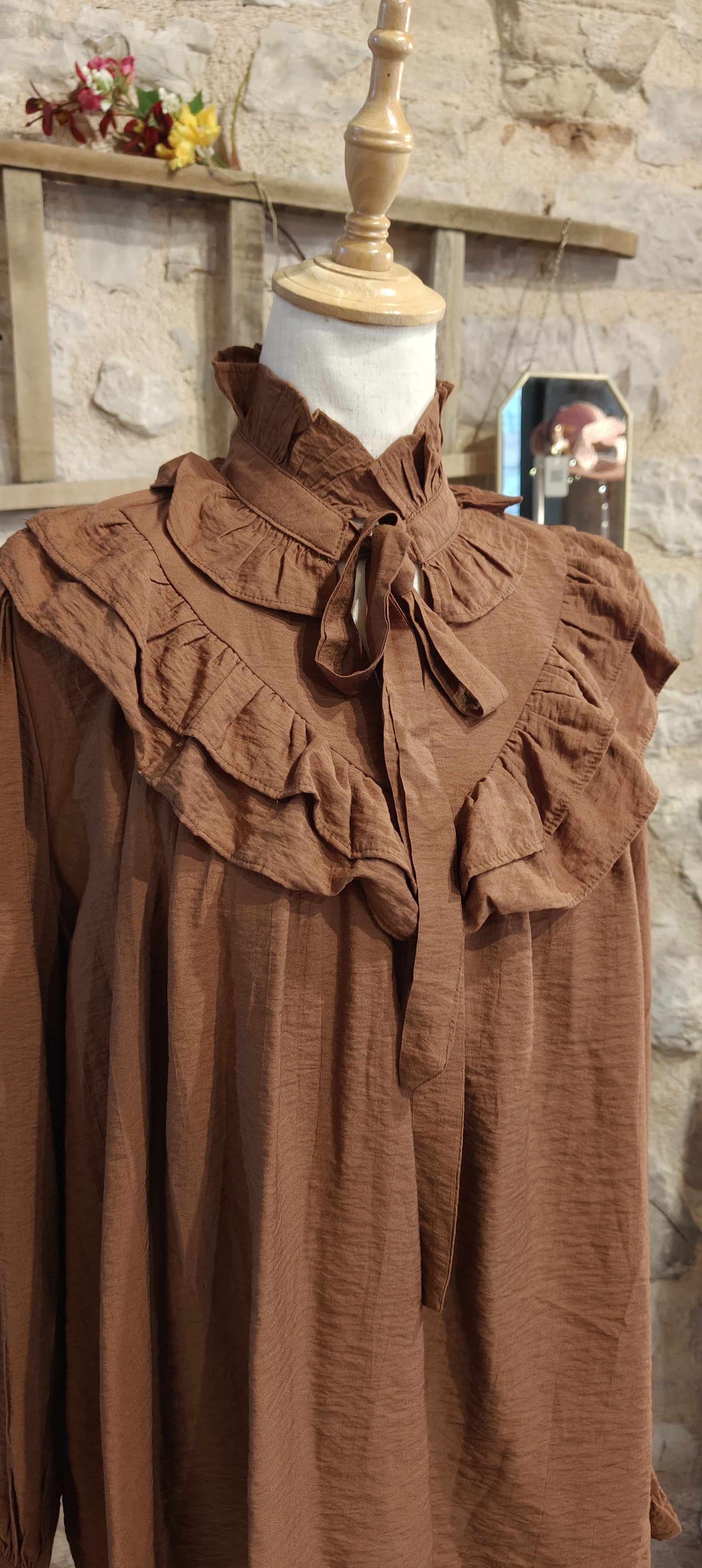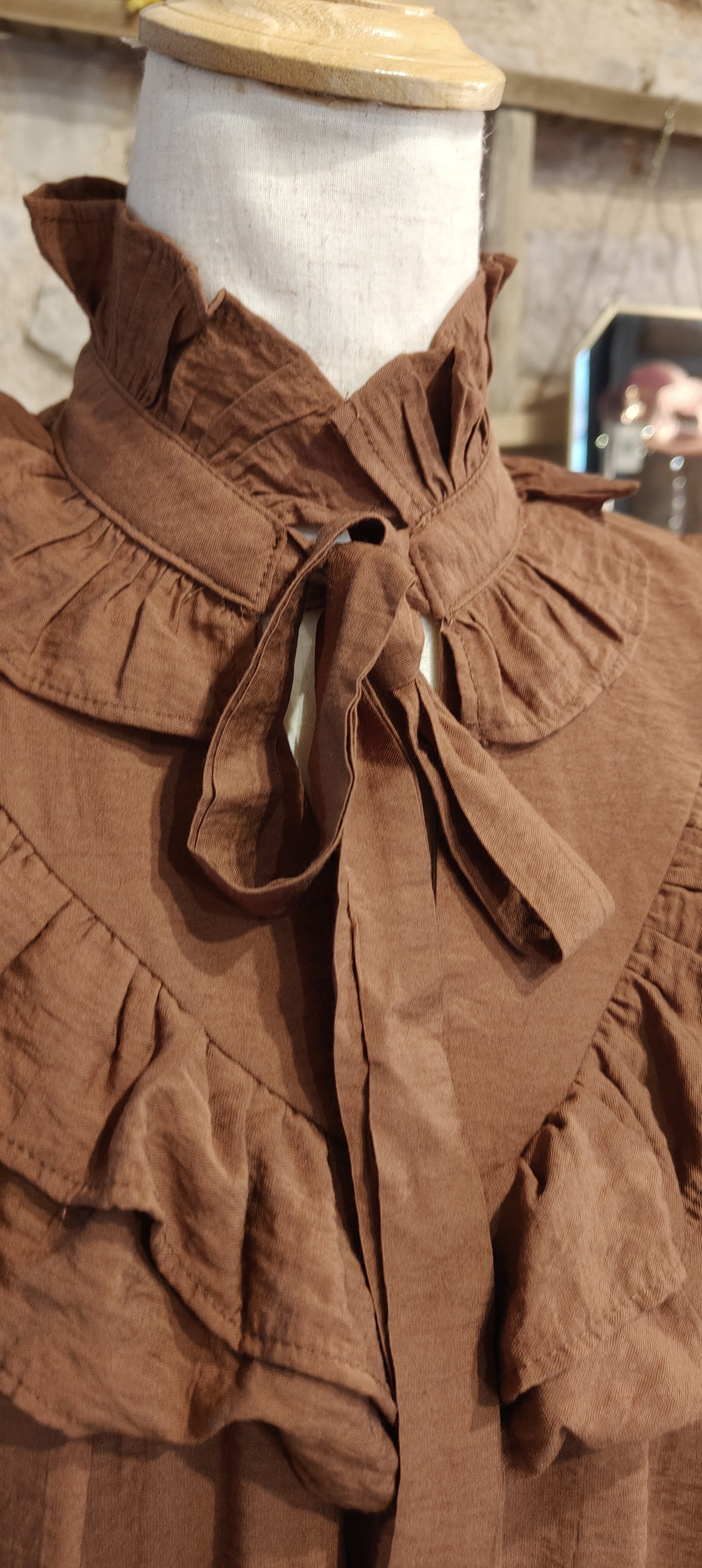 Blusa di ispirazione vintage, con collo alto e pizzi