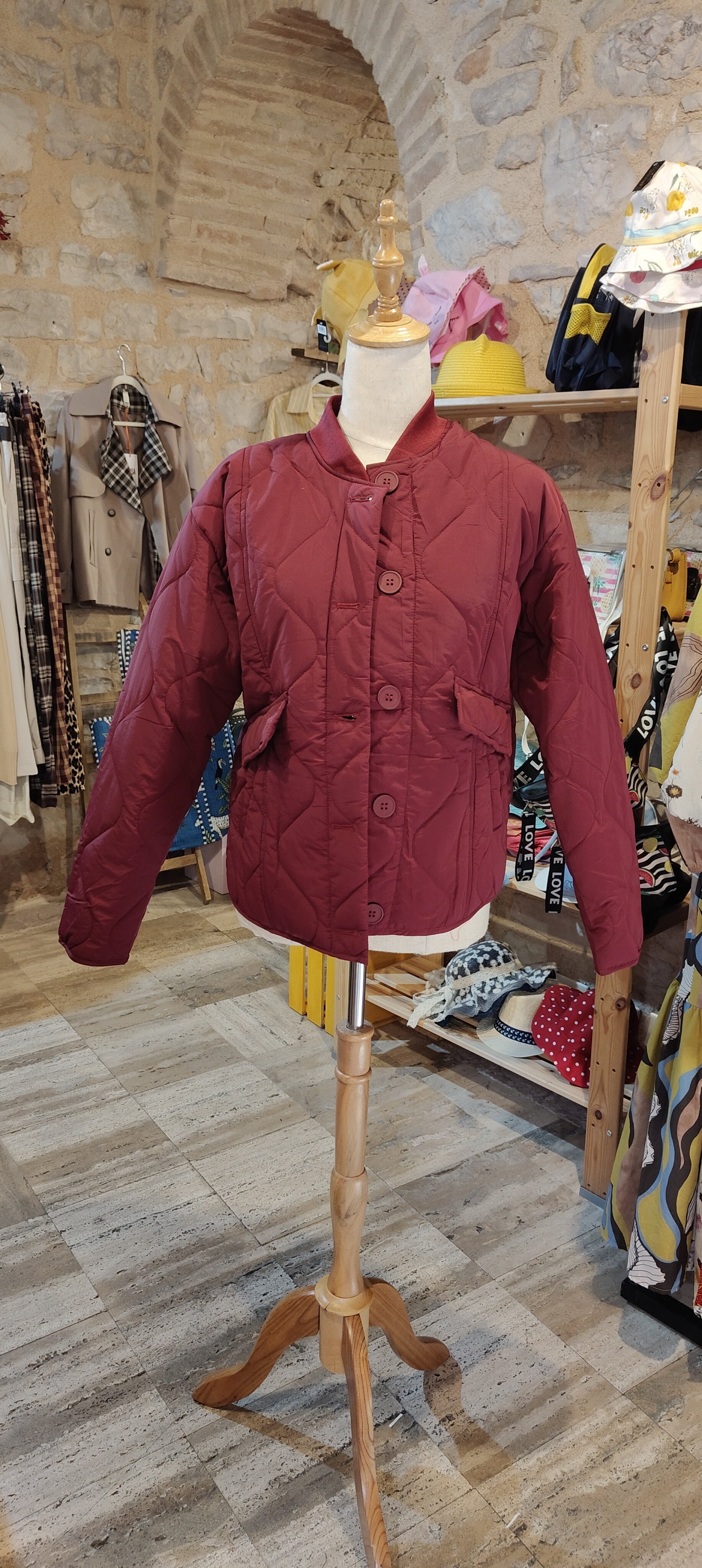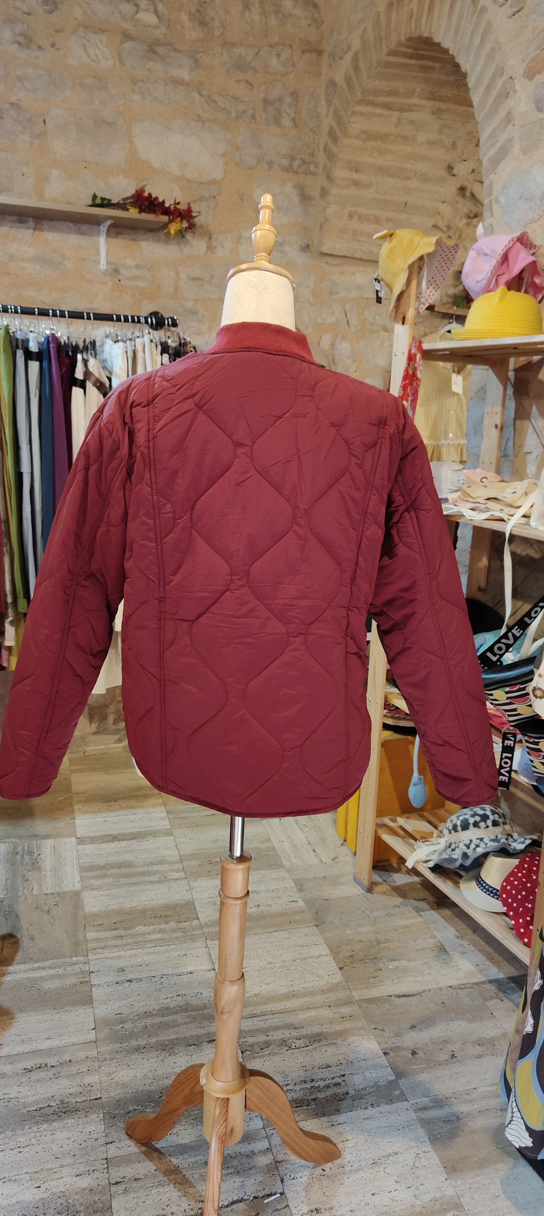 Bomber trapuntato colore vinaccia, con tasche laterali