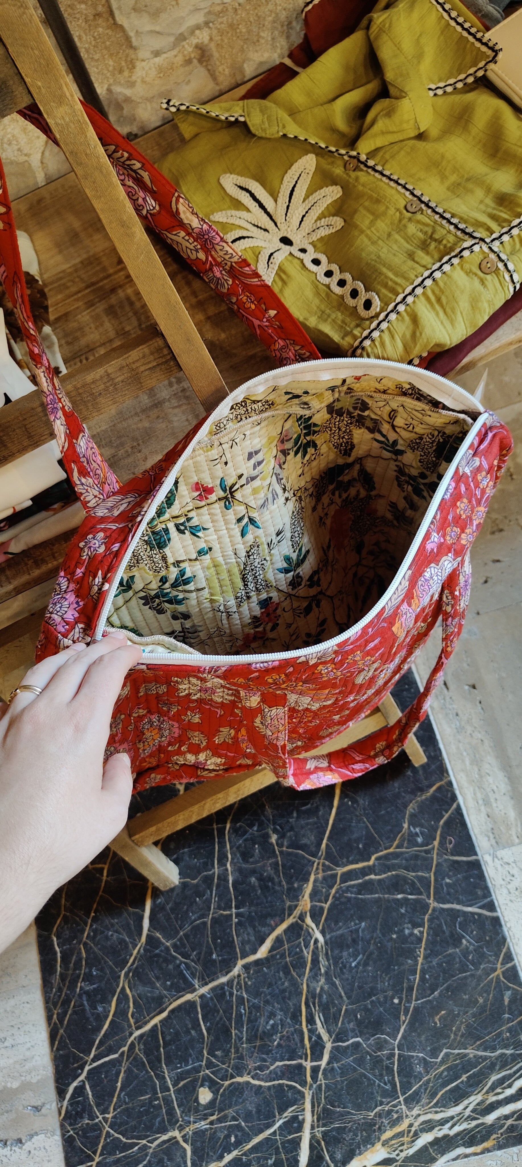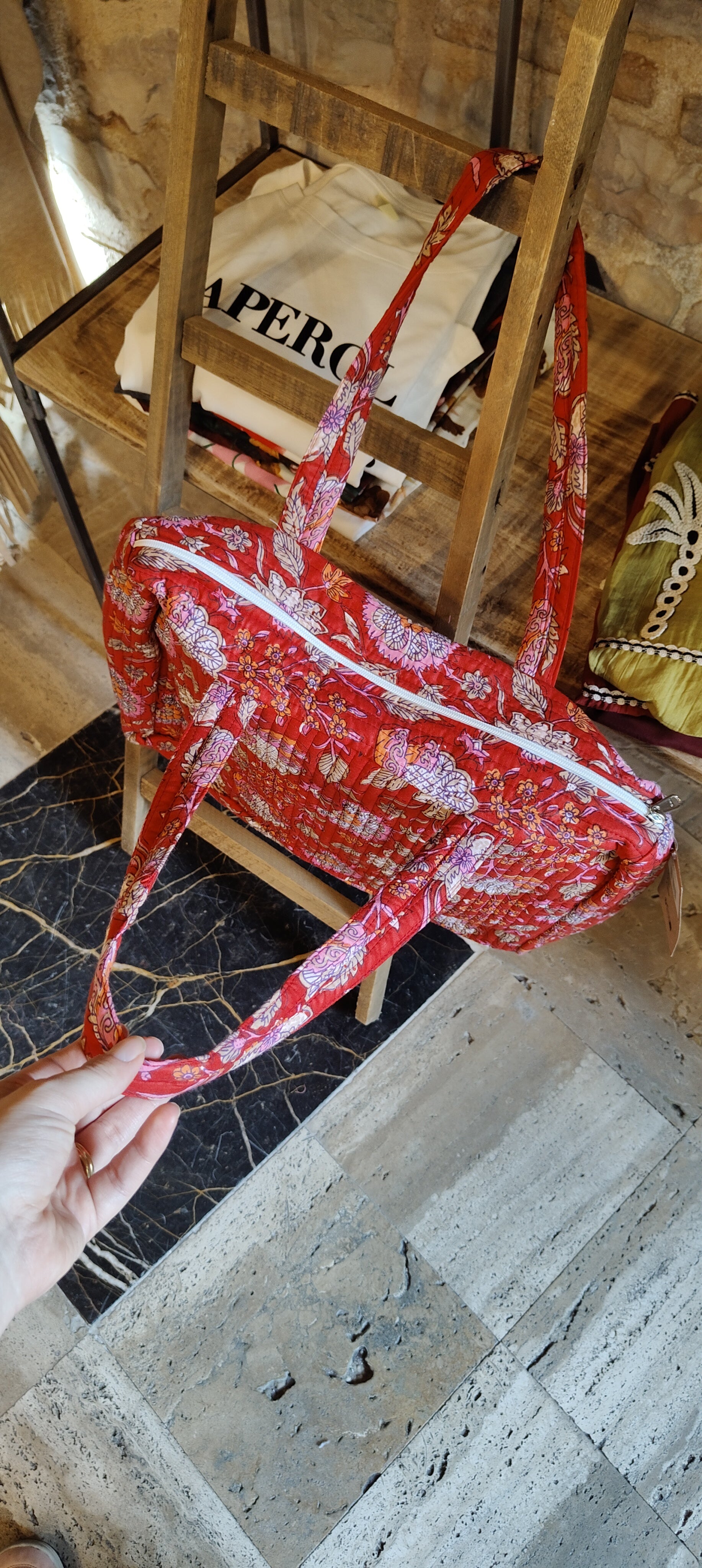 Borsone in cotone trapuntato con cerniera. Molto capiente