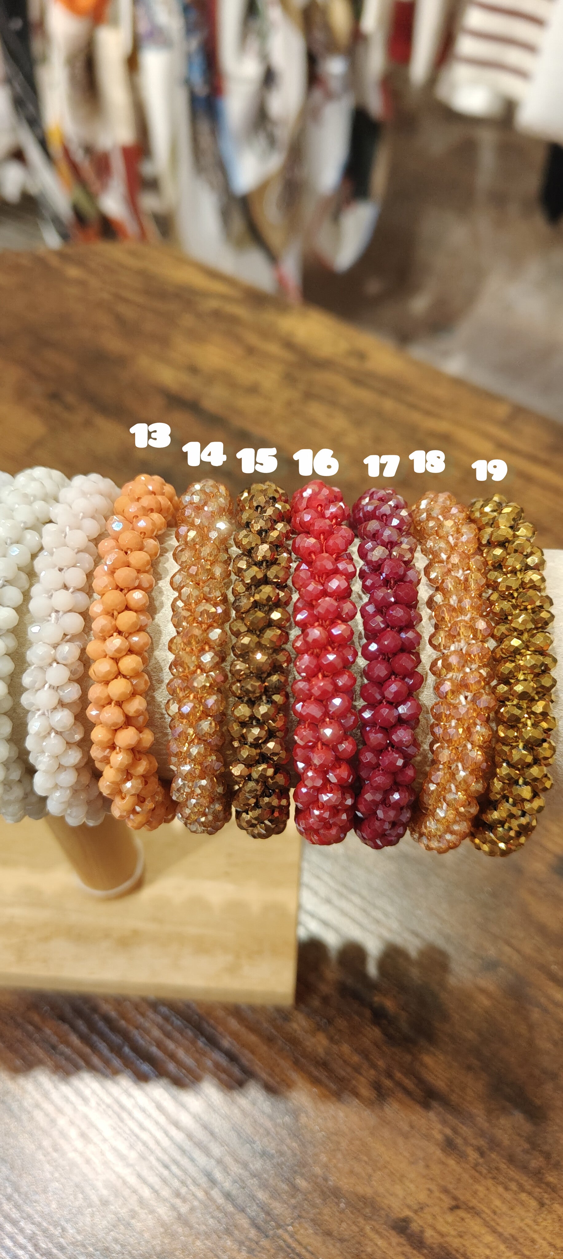 Bracciale con perline brillanti, con elastico. Disponibile in tanti colori.