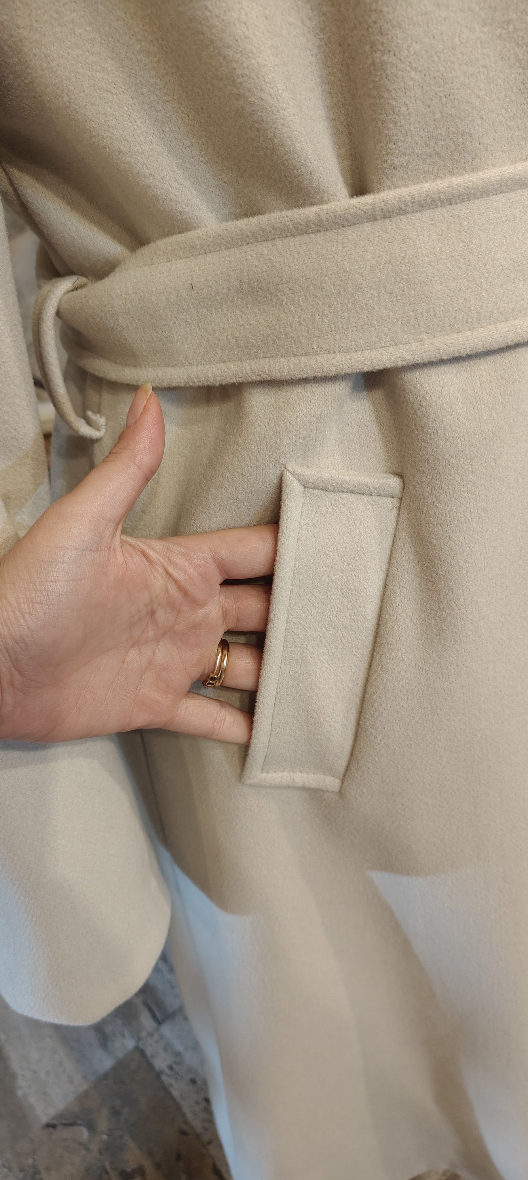Cappotto stile trench rosso, foderato, con tasche laterali