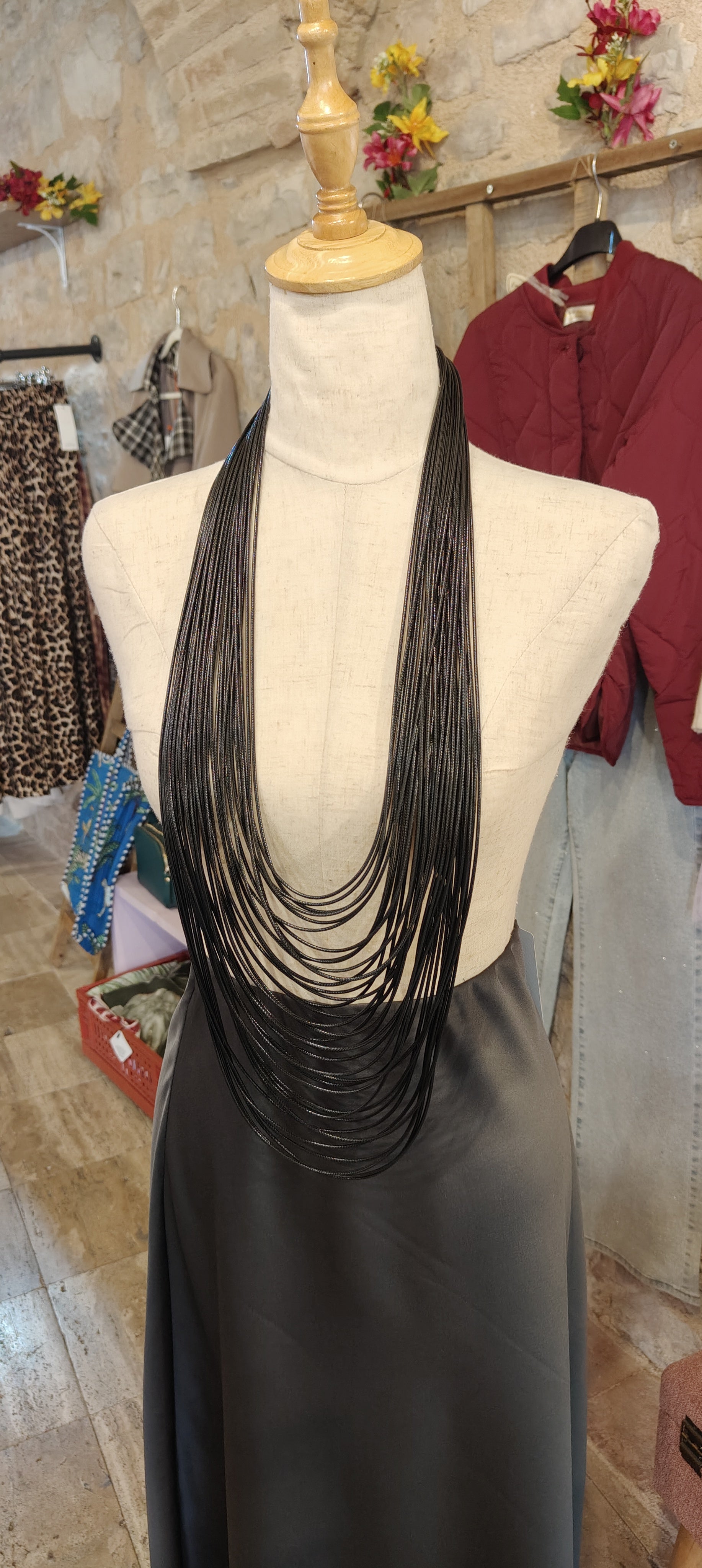 Collana composta da fili in acetato di diversa lunghezza,con chiusura a calamita
