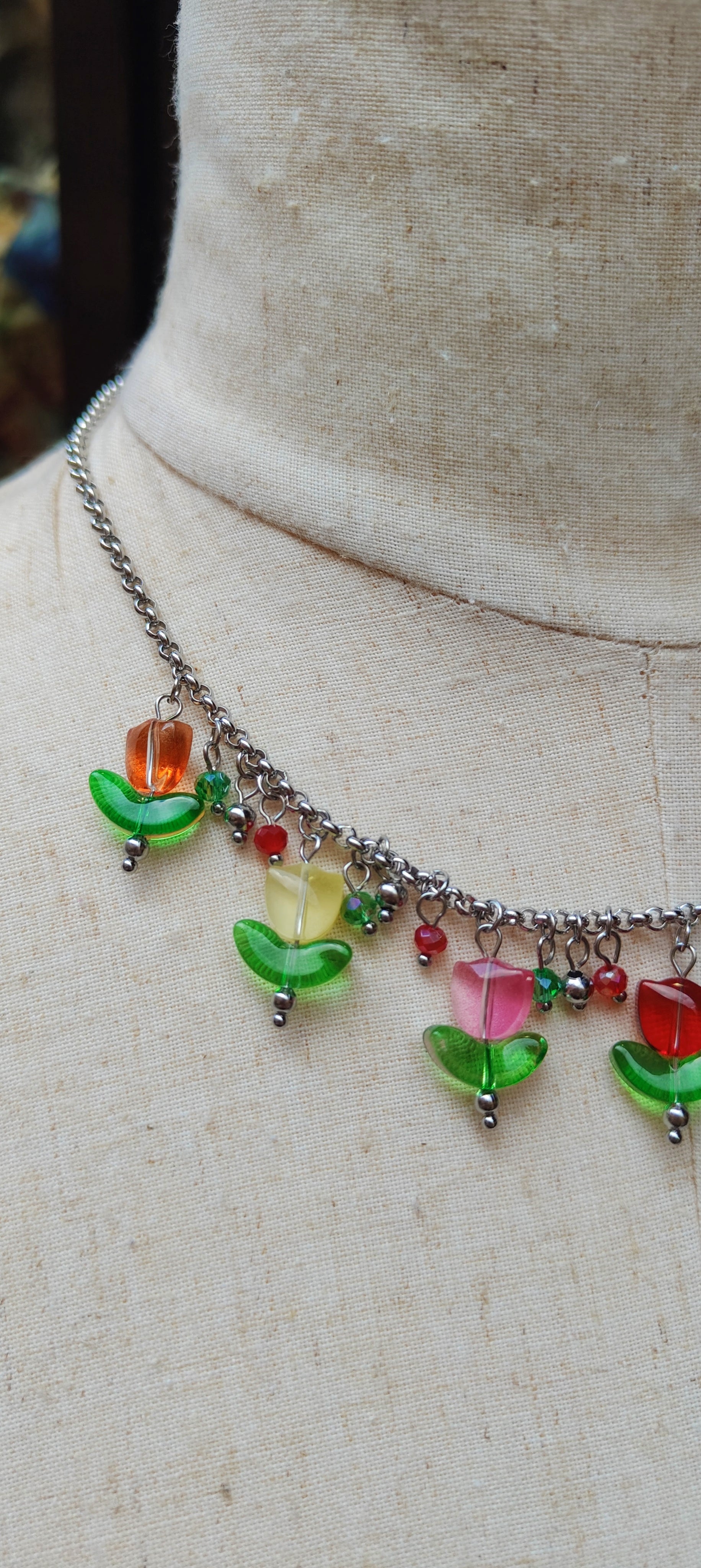 Collana in acciaio inossidabile con tulipani di vari colori