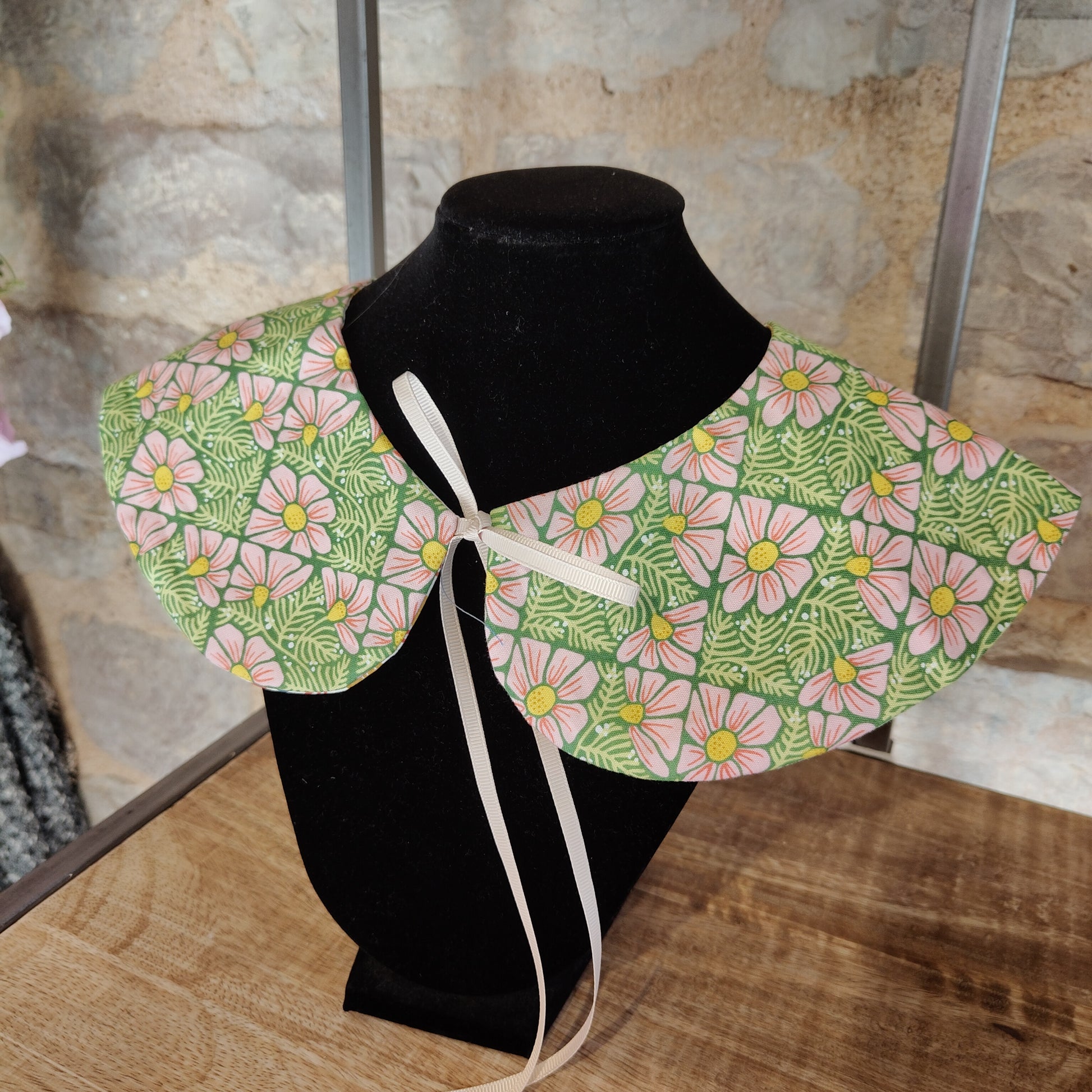 Colletto handmade reversibile, con tessuti scelti, abbinati e cuciti interamente da me.