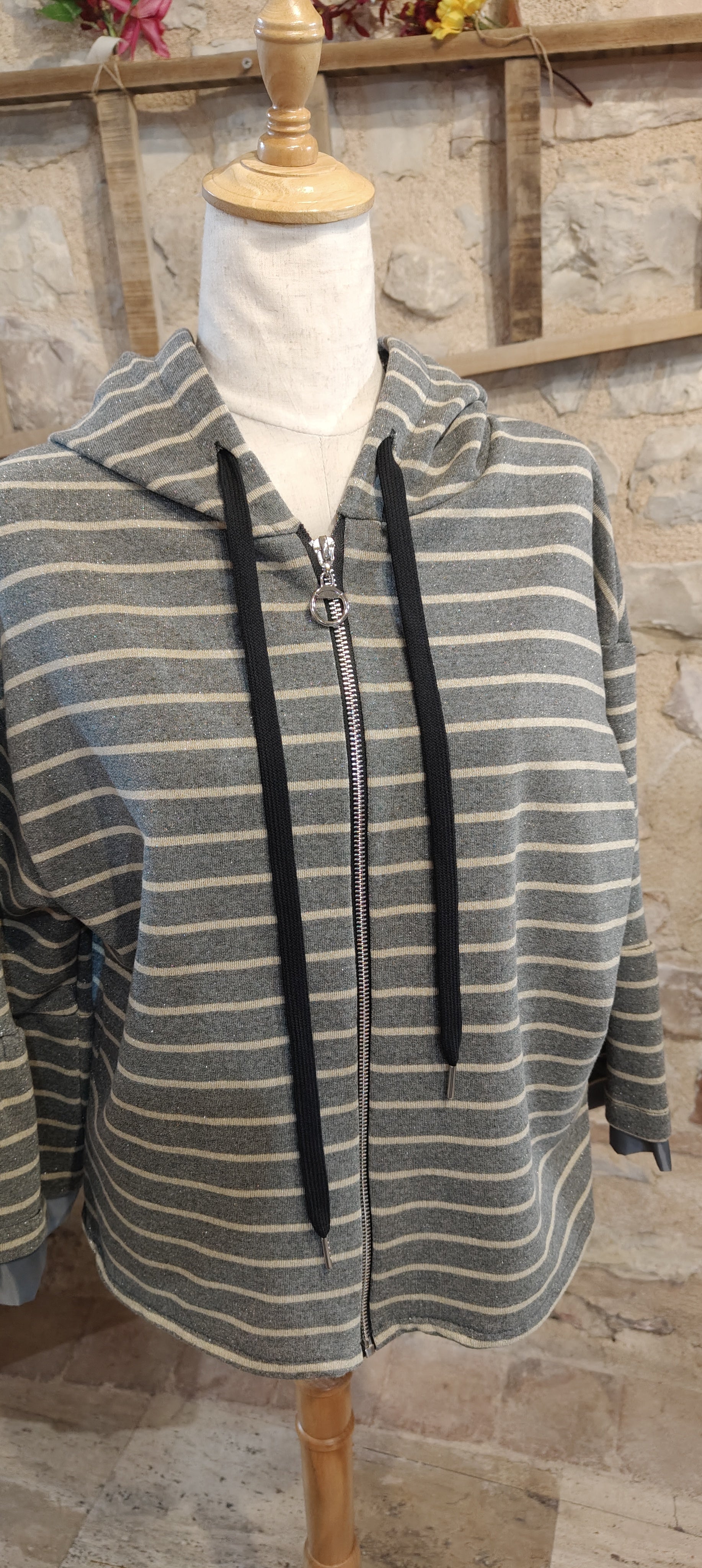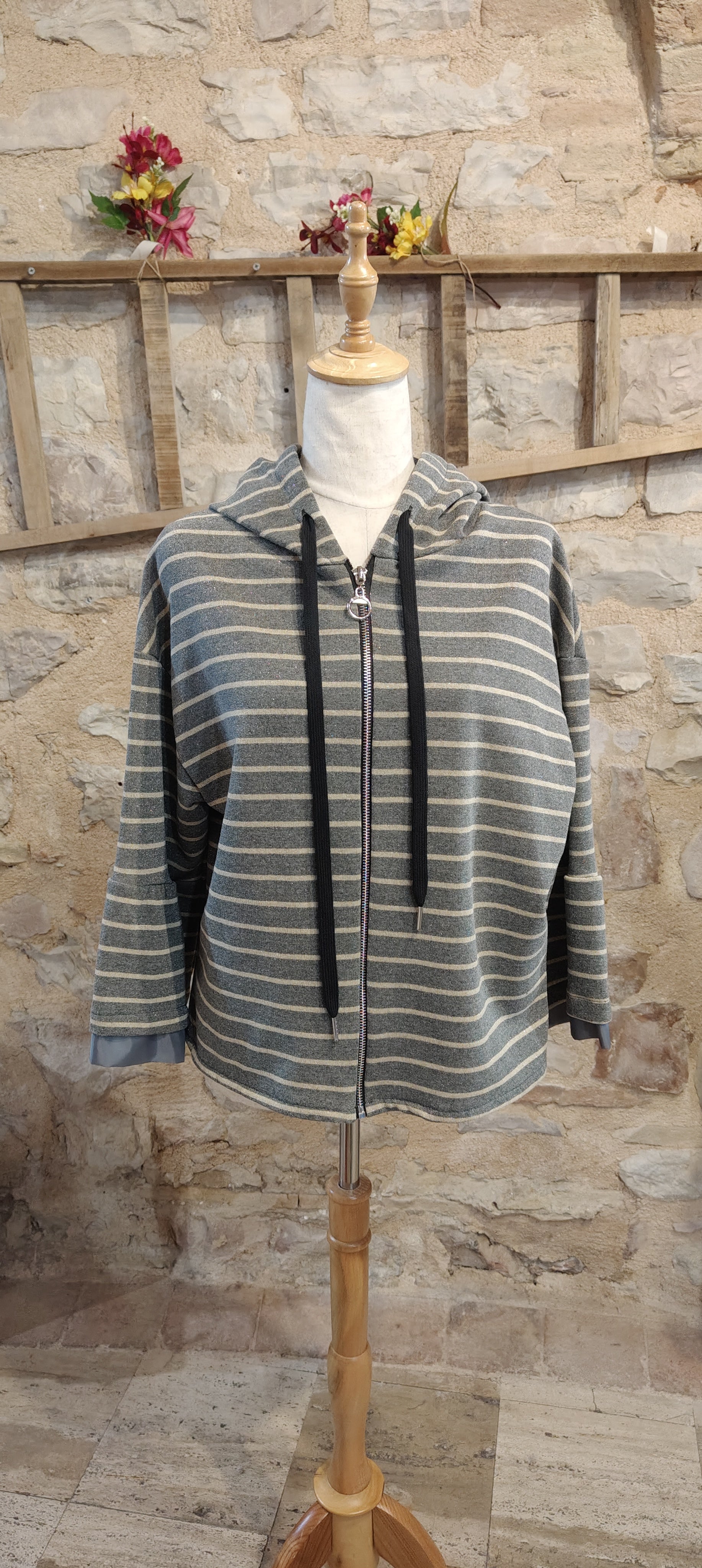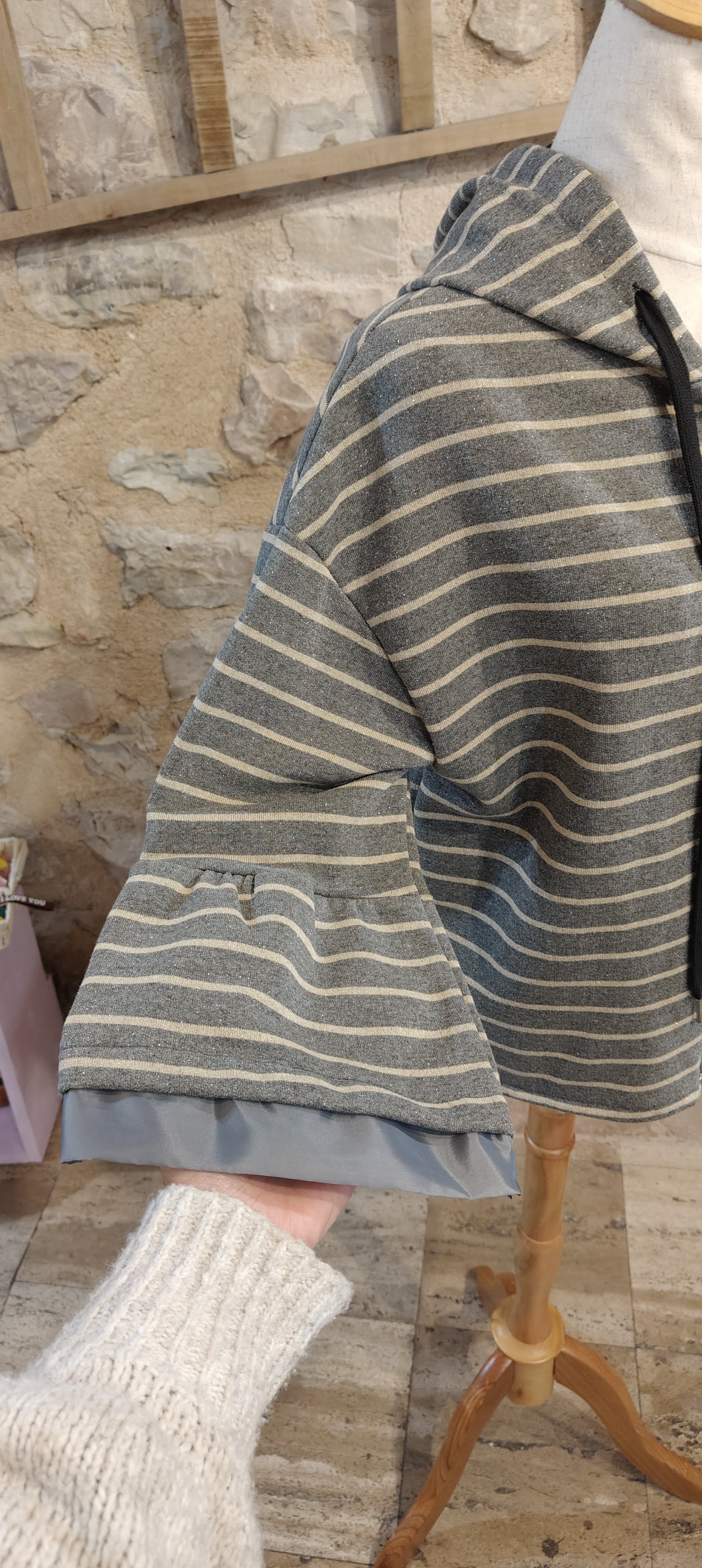 Felpa ampia con manica tre quarti e rouges. Ha un fit largo