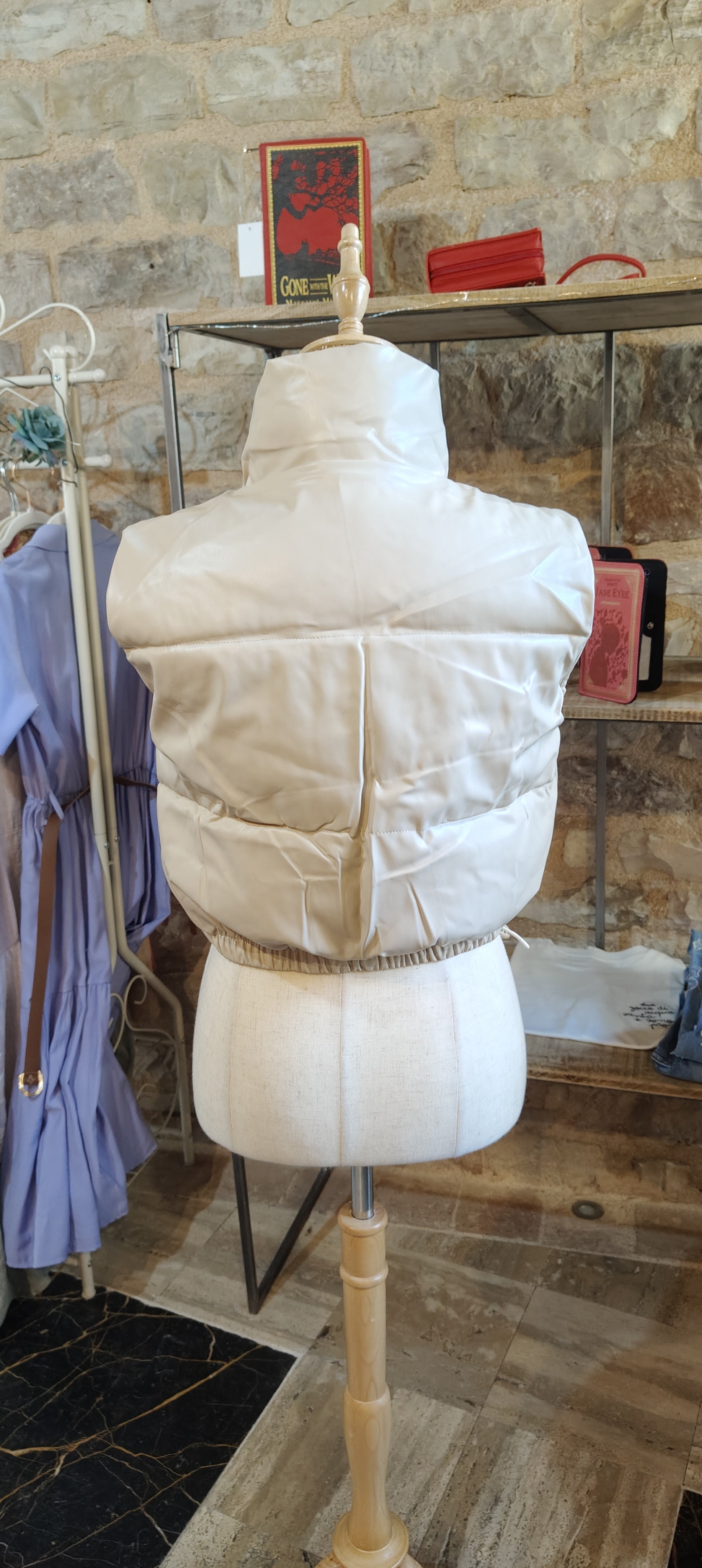 Gilet imbottito crop, con tasche laterali e regolabile in vita
