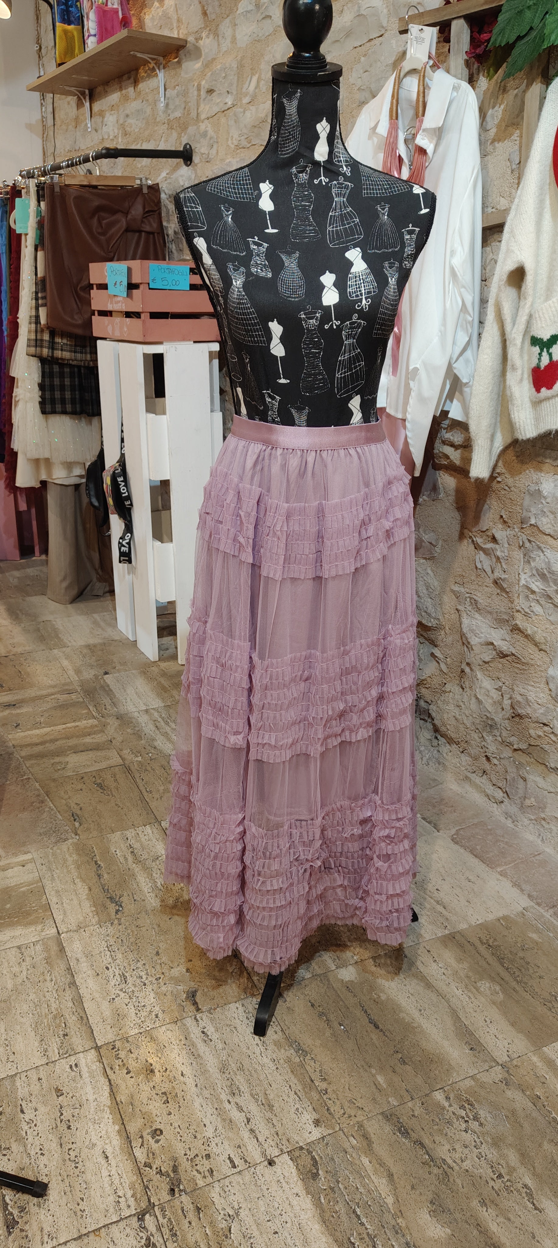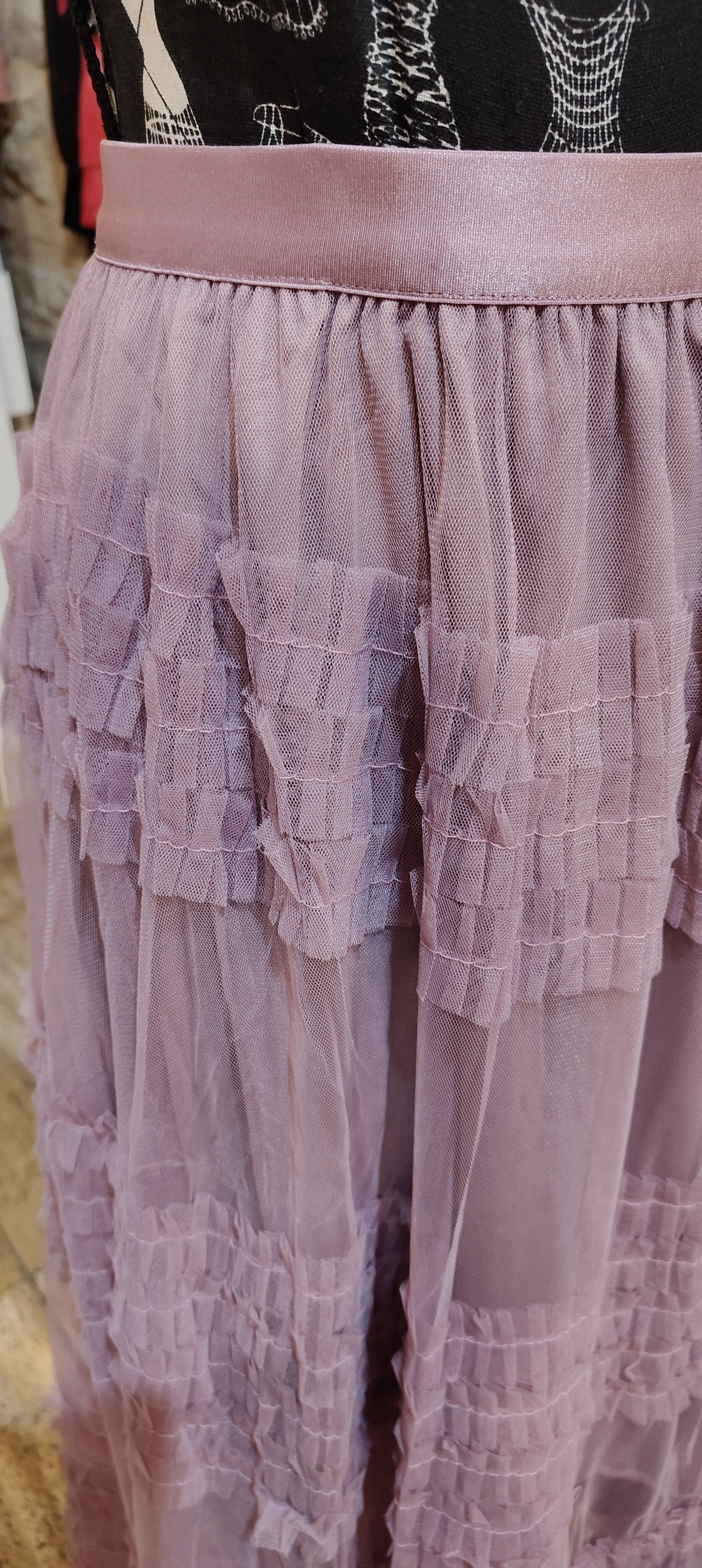 Gonna a balze in tulle colore rosa antico, elastico in vita