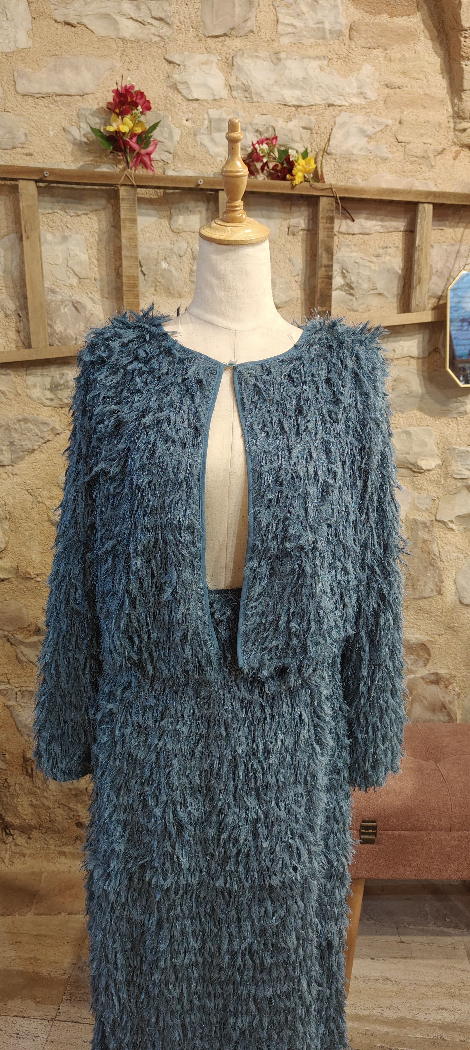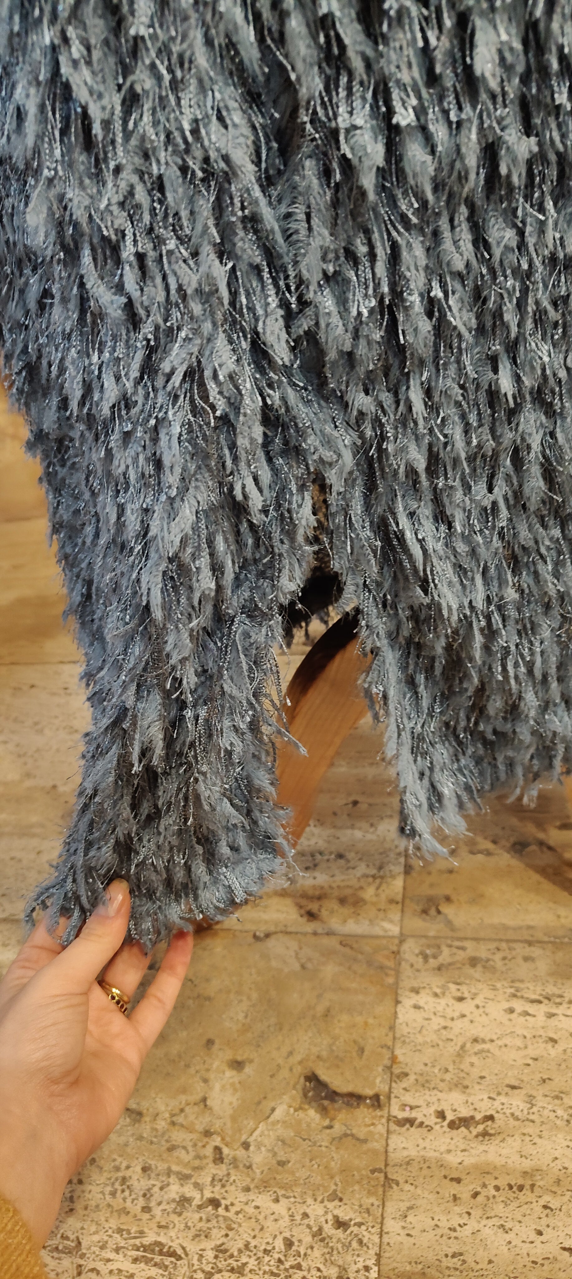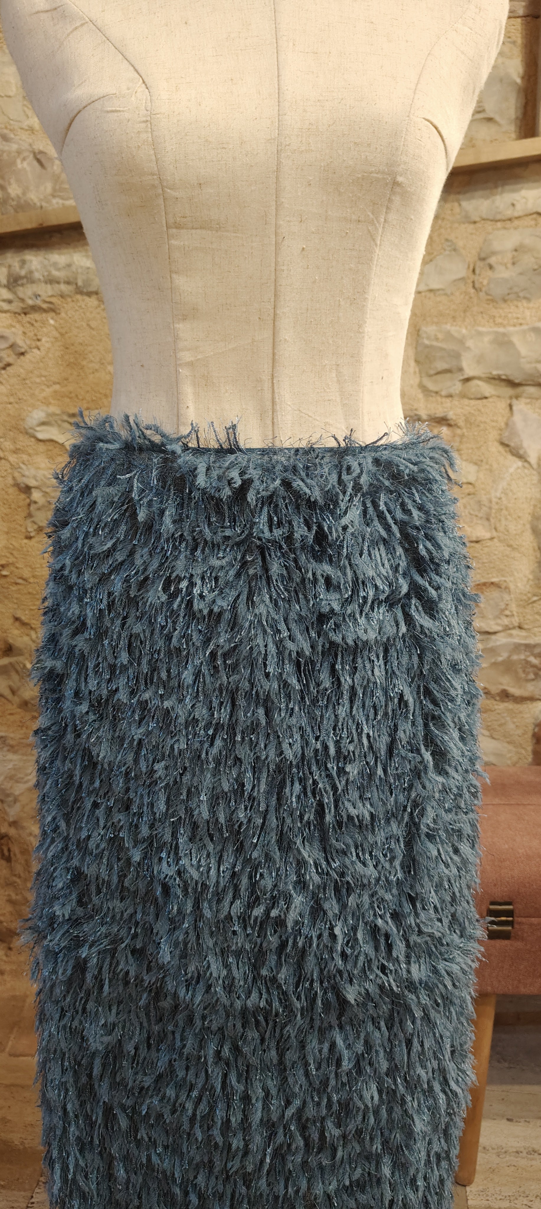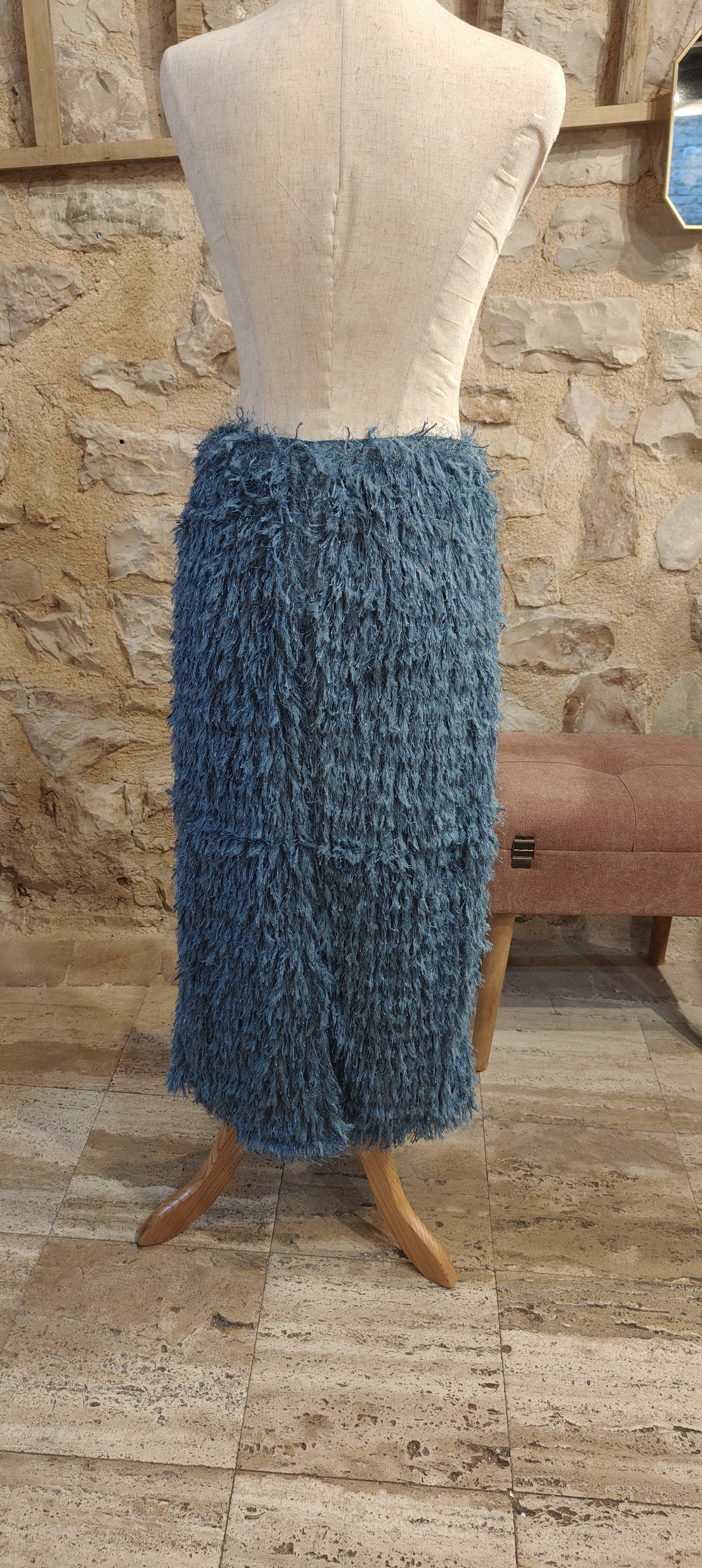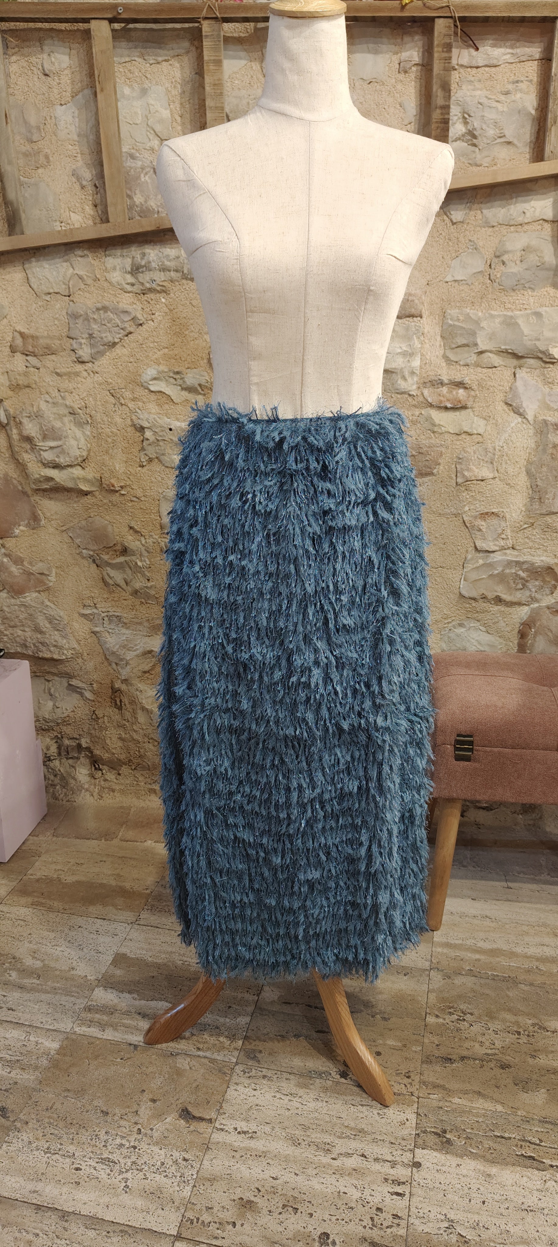 Lungette con elastico in vita e lieve spacco sul retro, realizzato con tessuto morbido sfrangiato