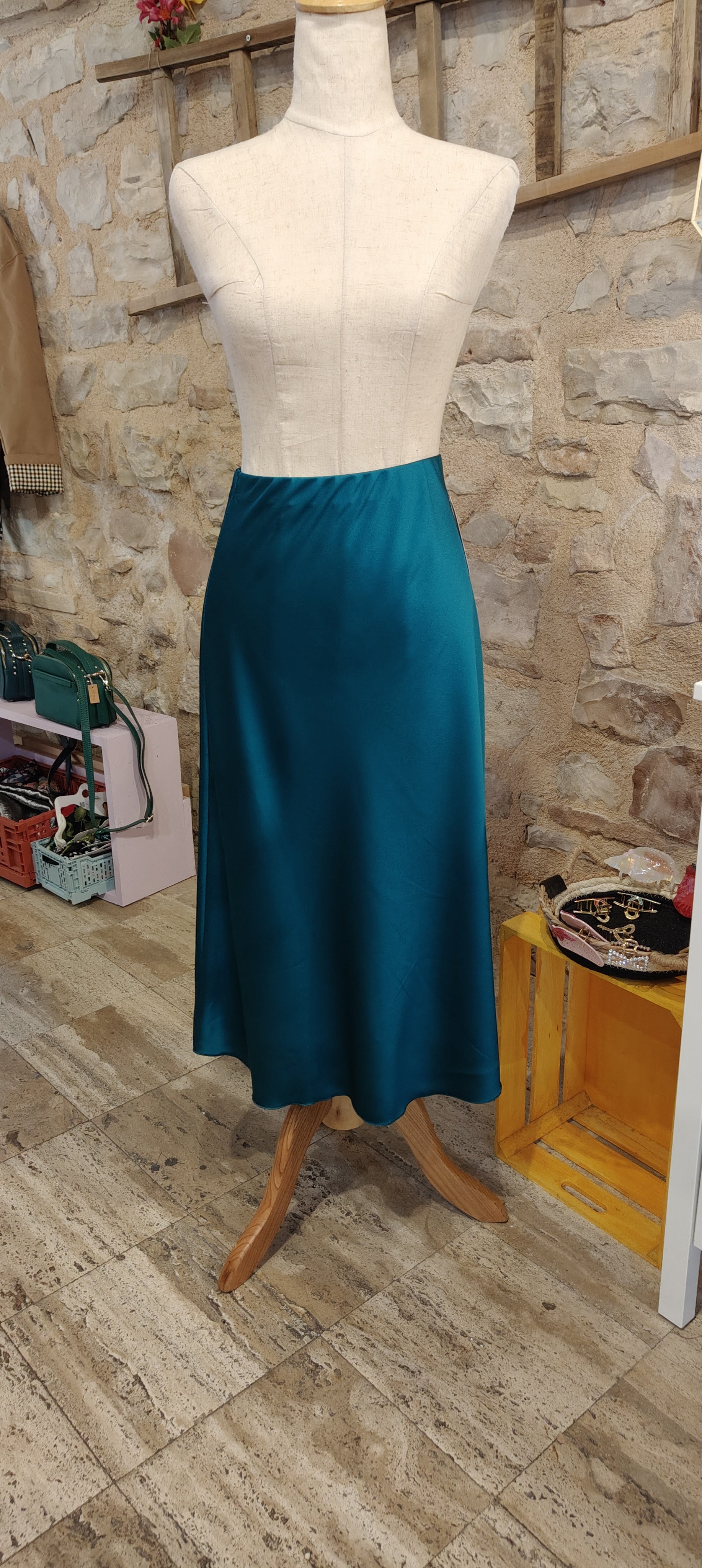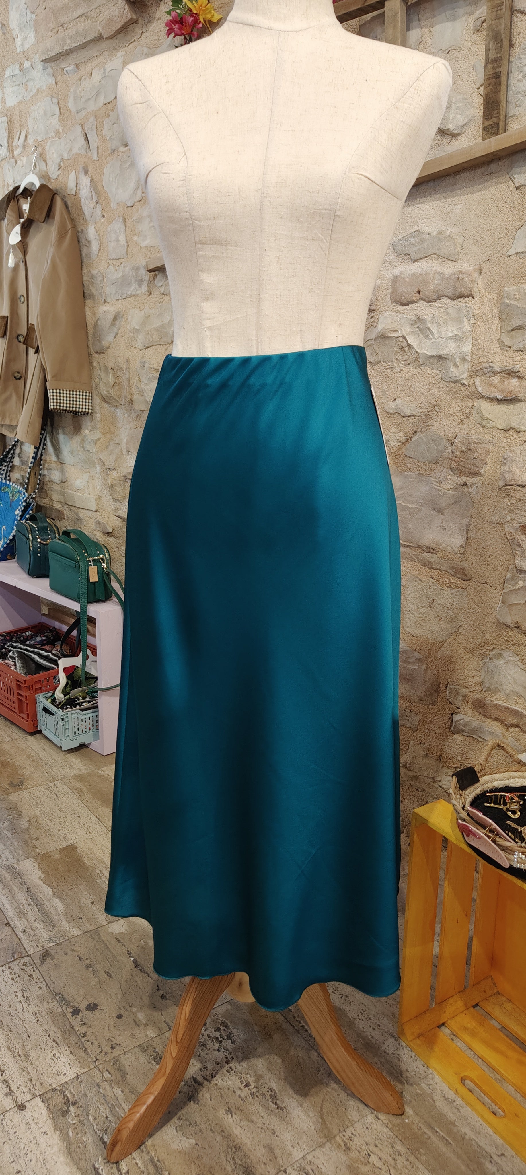 Gonna satine lunga fino al polpaccio, A line
