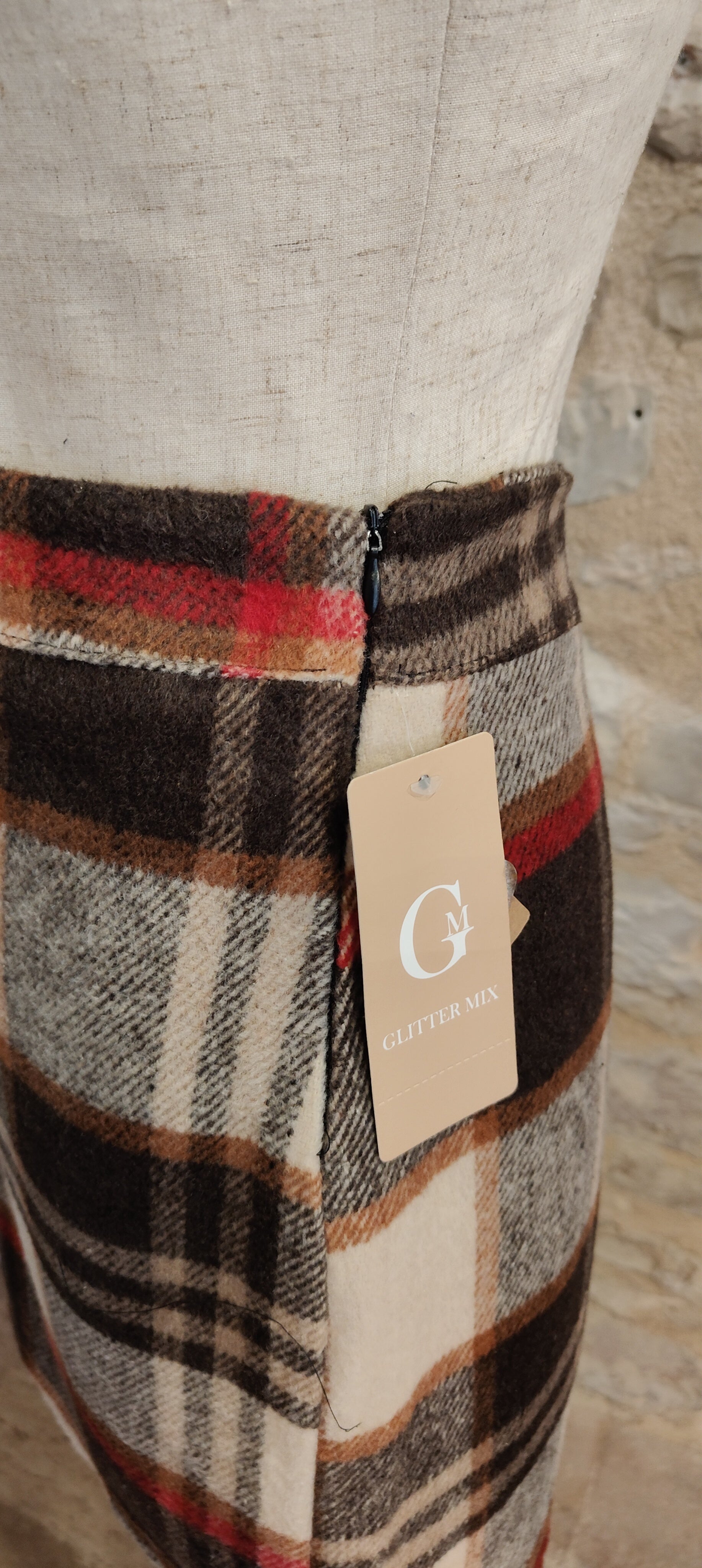 Gonna a quadri con zip invisibile, aderente sul fianco