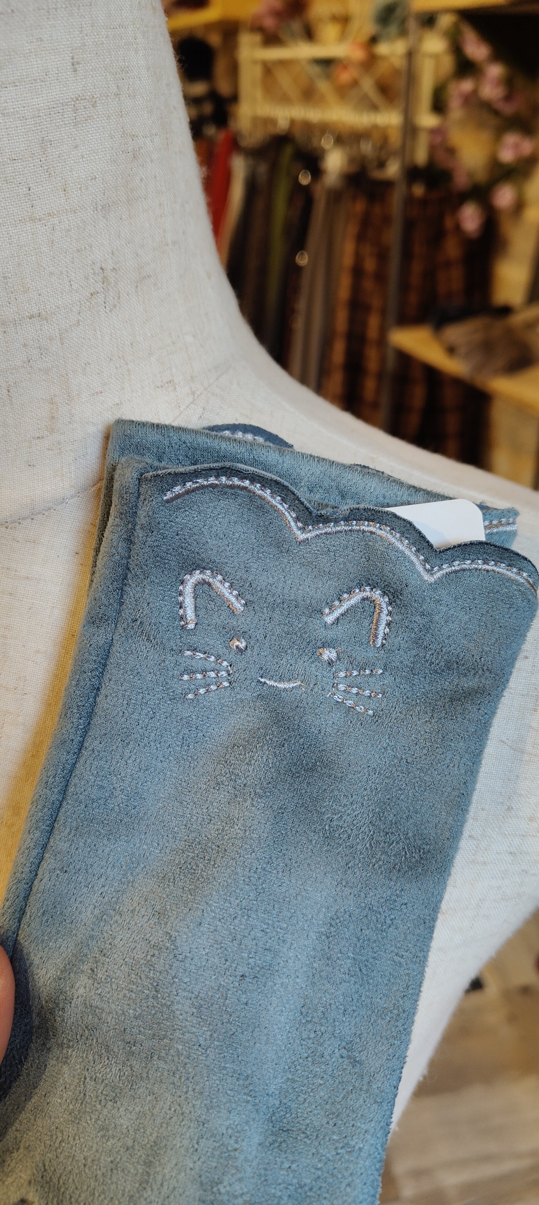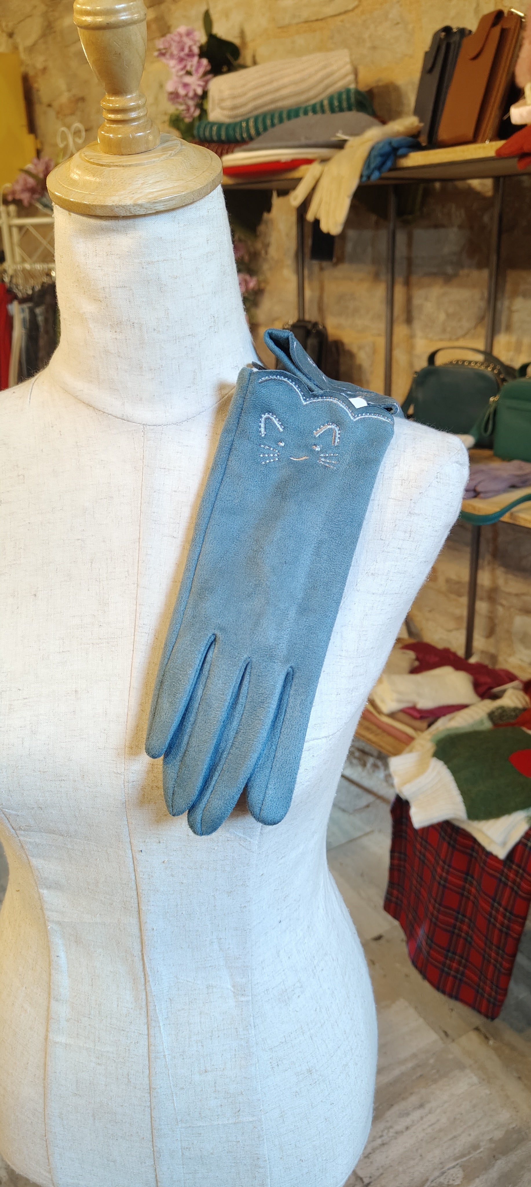 Guanti con gatto e rifinitura merlettata, con ricamo sul dito indice per usare il telefono