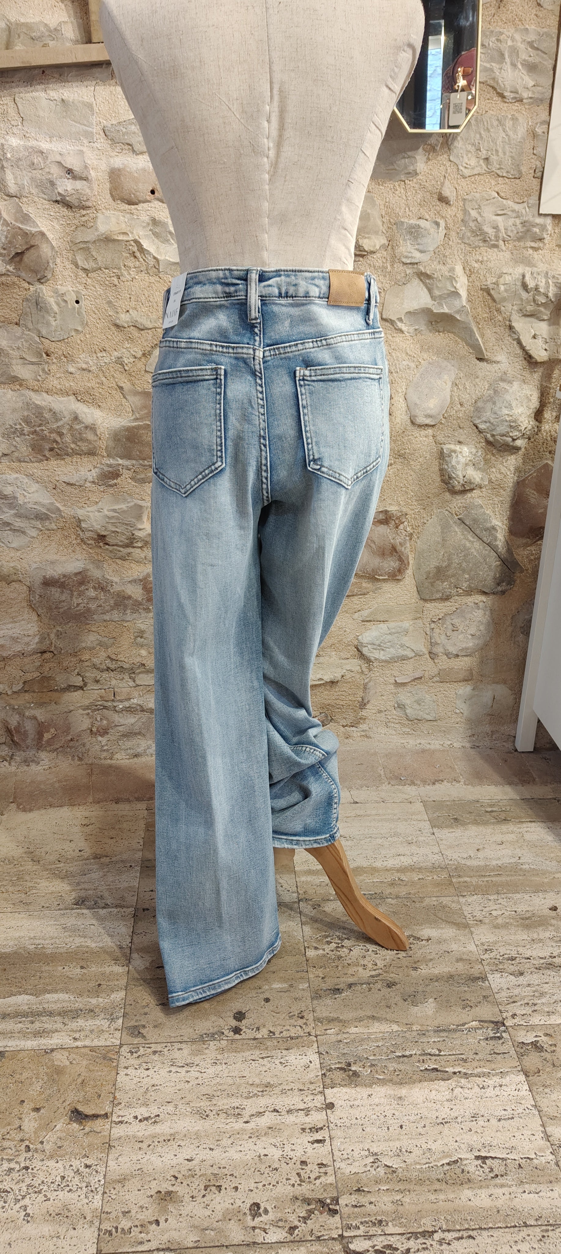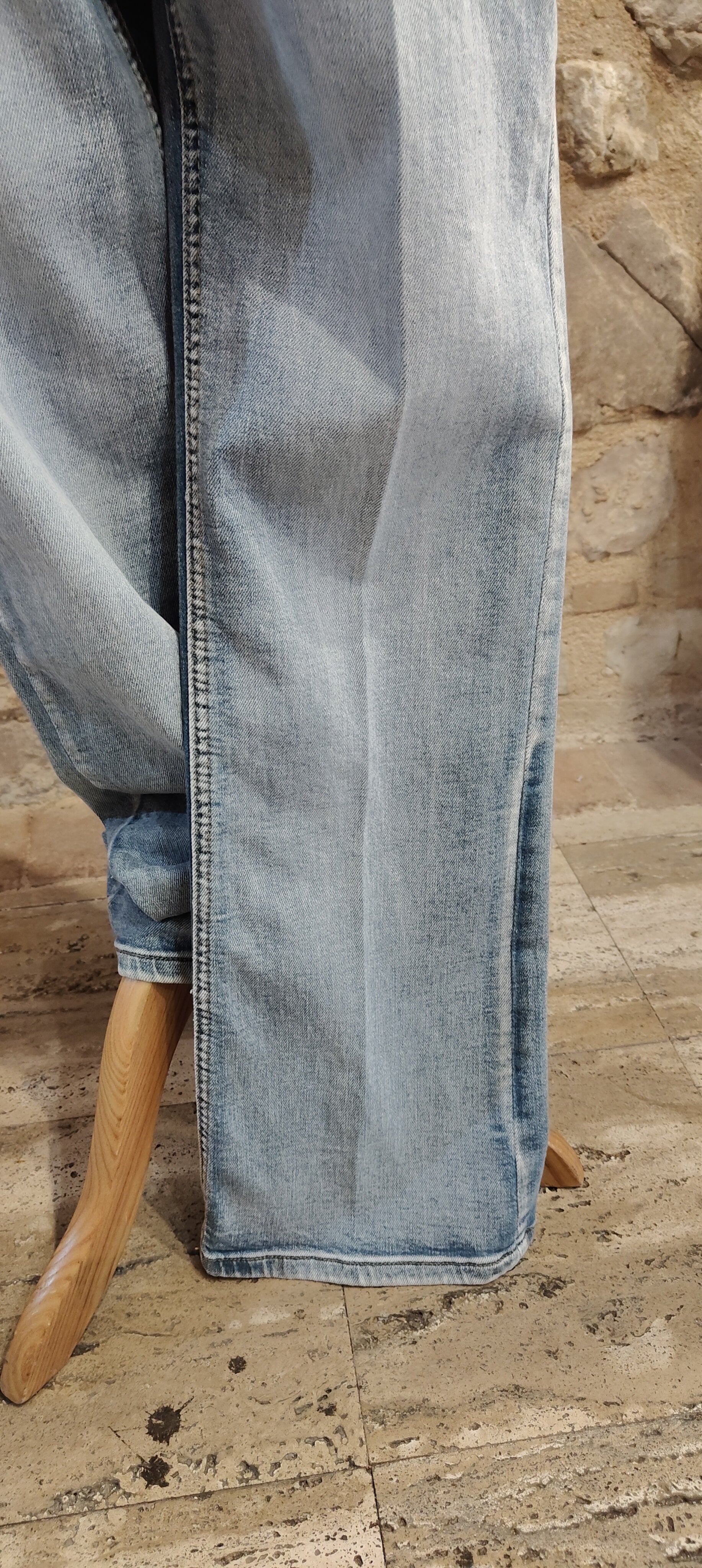 Jeans elasticizzati con tasche avanti e dietro. Gamba dritta