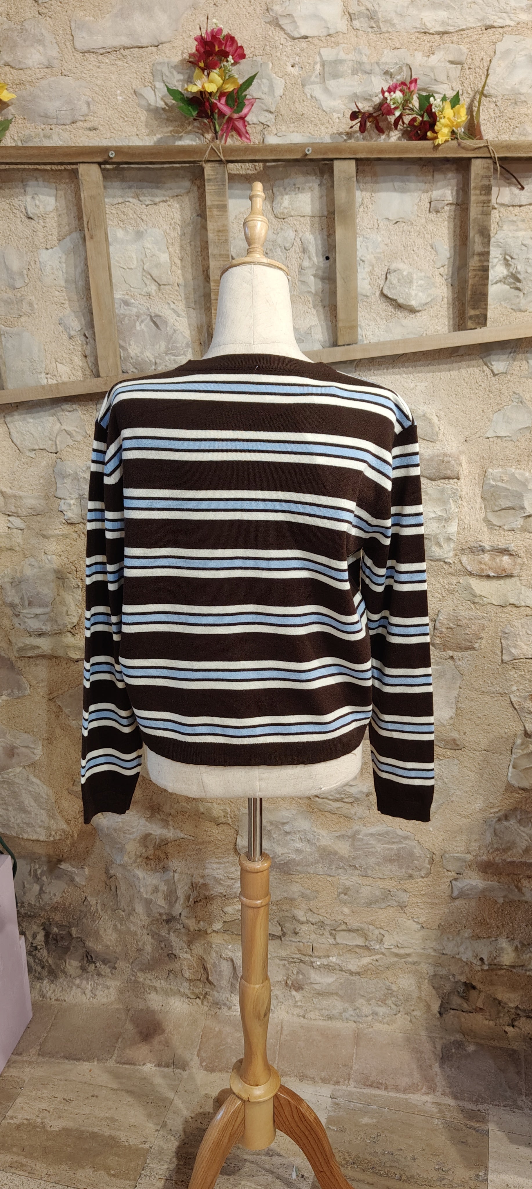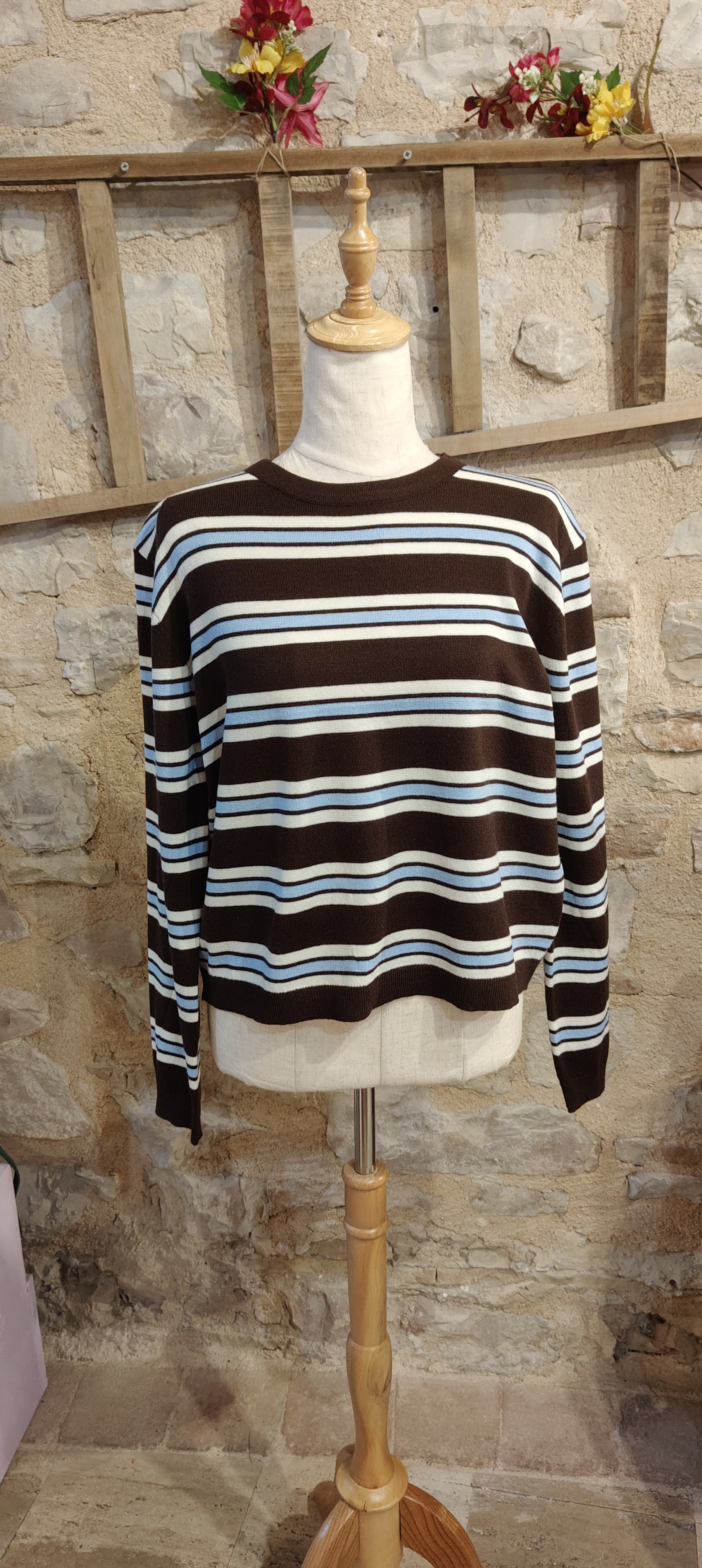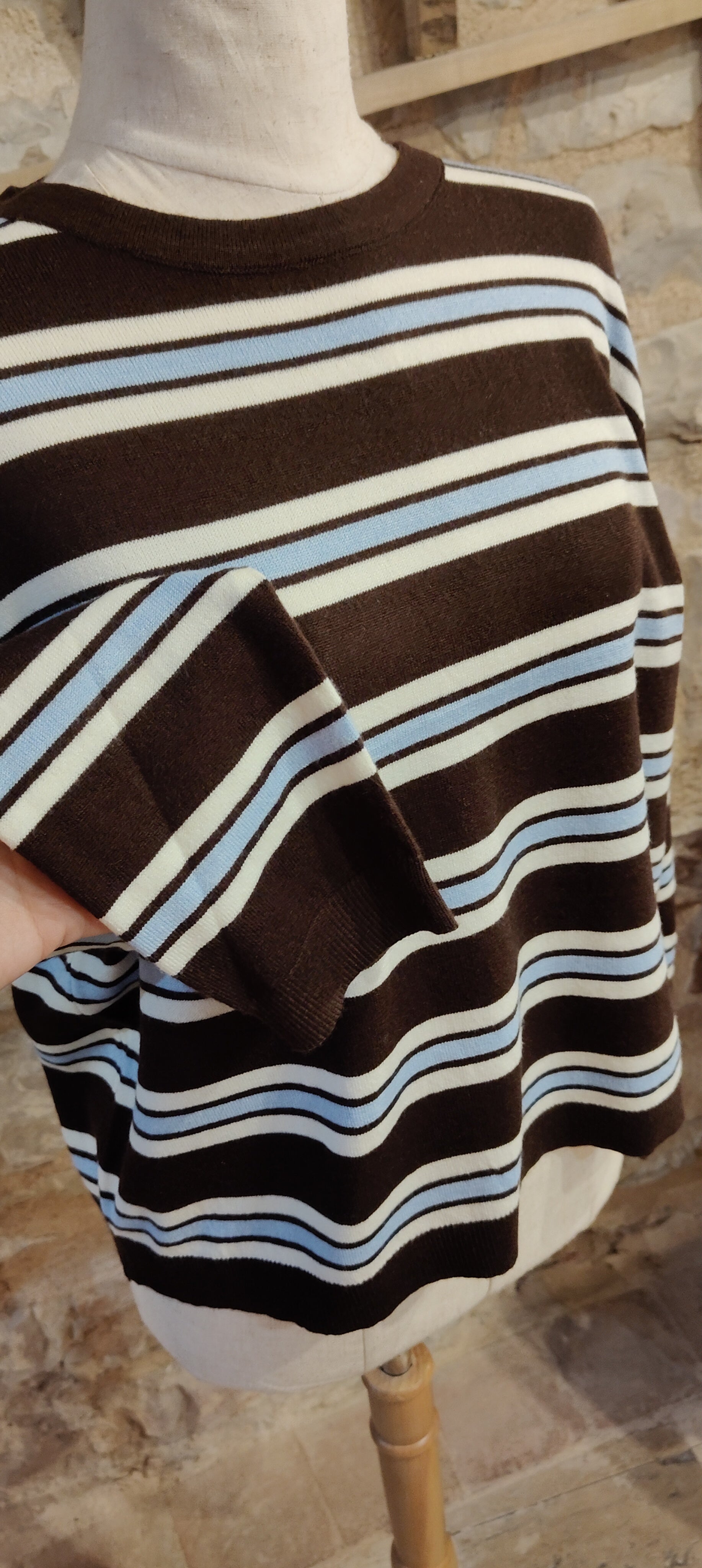 Maglia in maglina a righe, molto morbida. Arriva poco sotto la vita