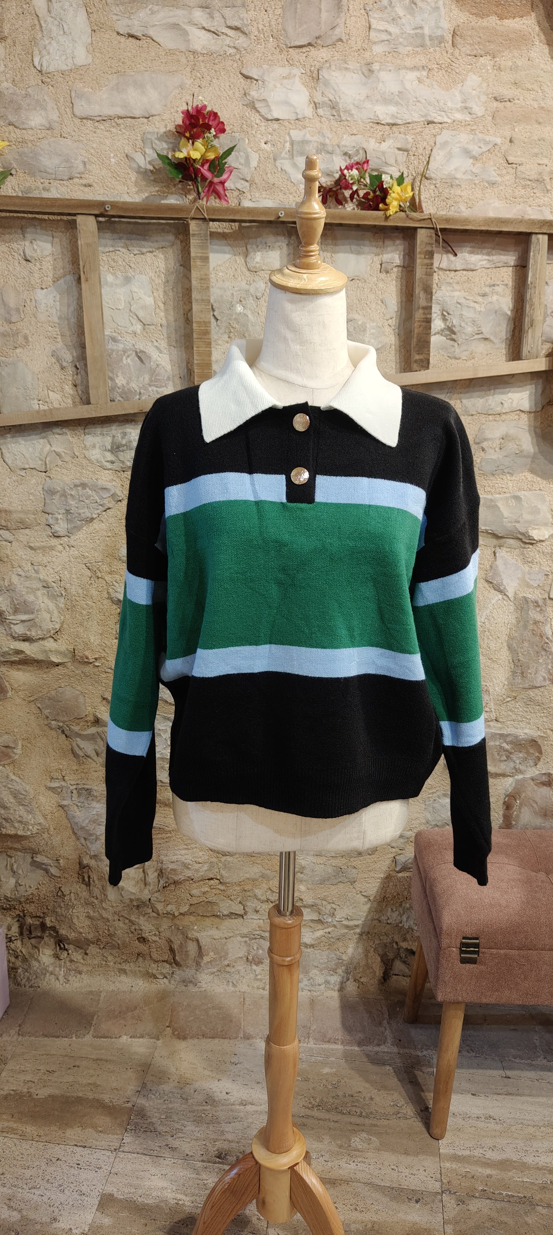 Maglioncino in maglina elasticizzata con bottoni e colletto