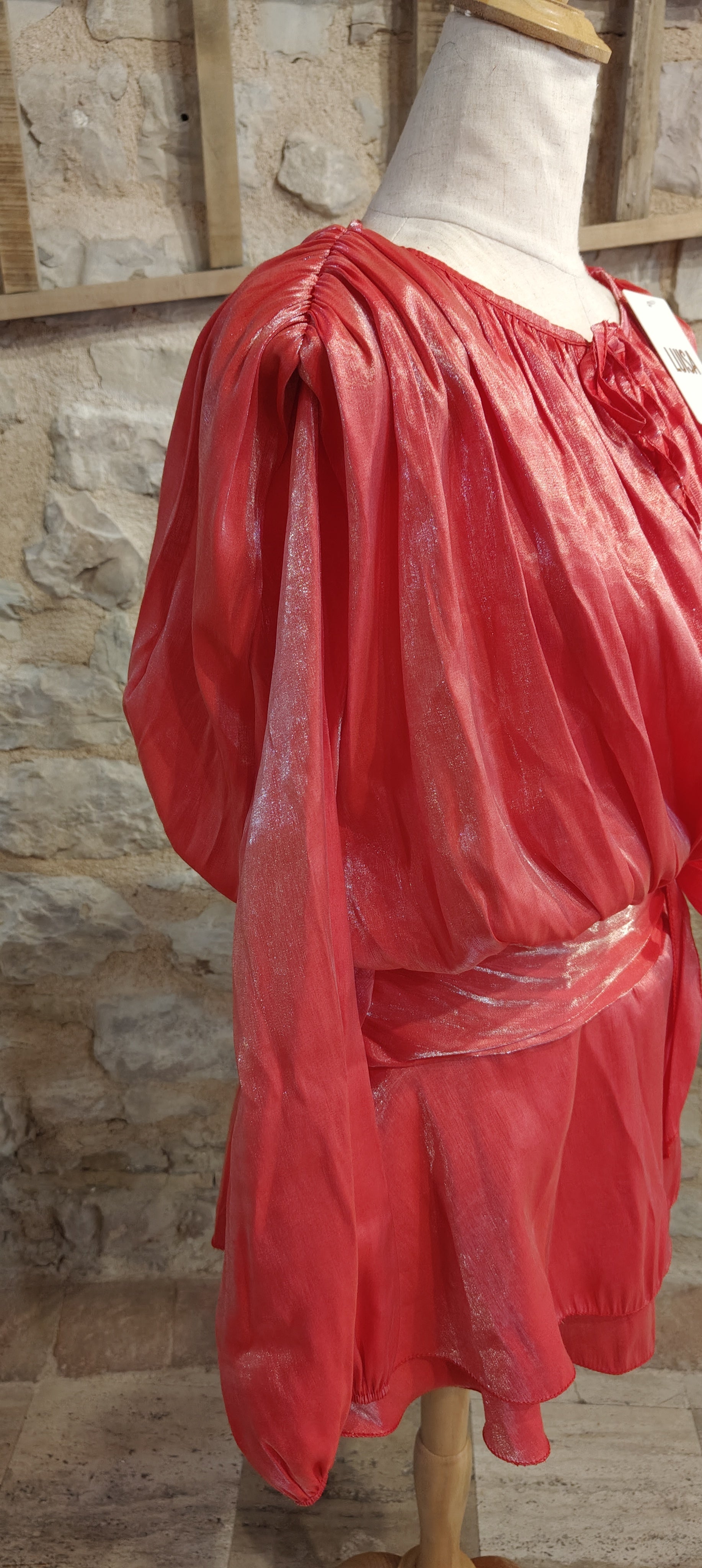 Abito minigonna con spalline imbottite, elastico sul retro e fiocco ornamentale laterale
