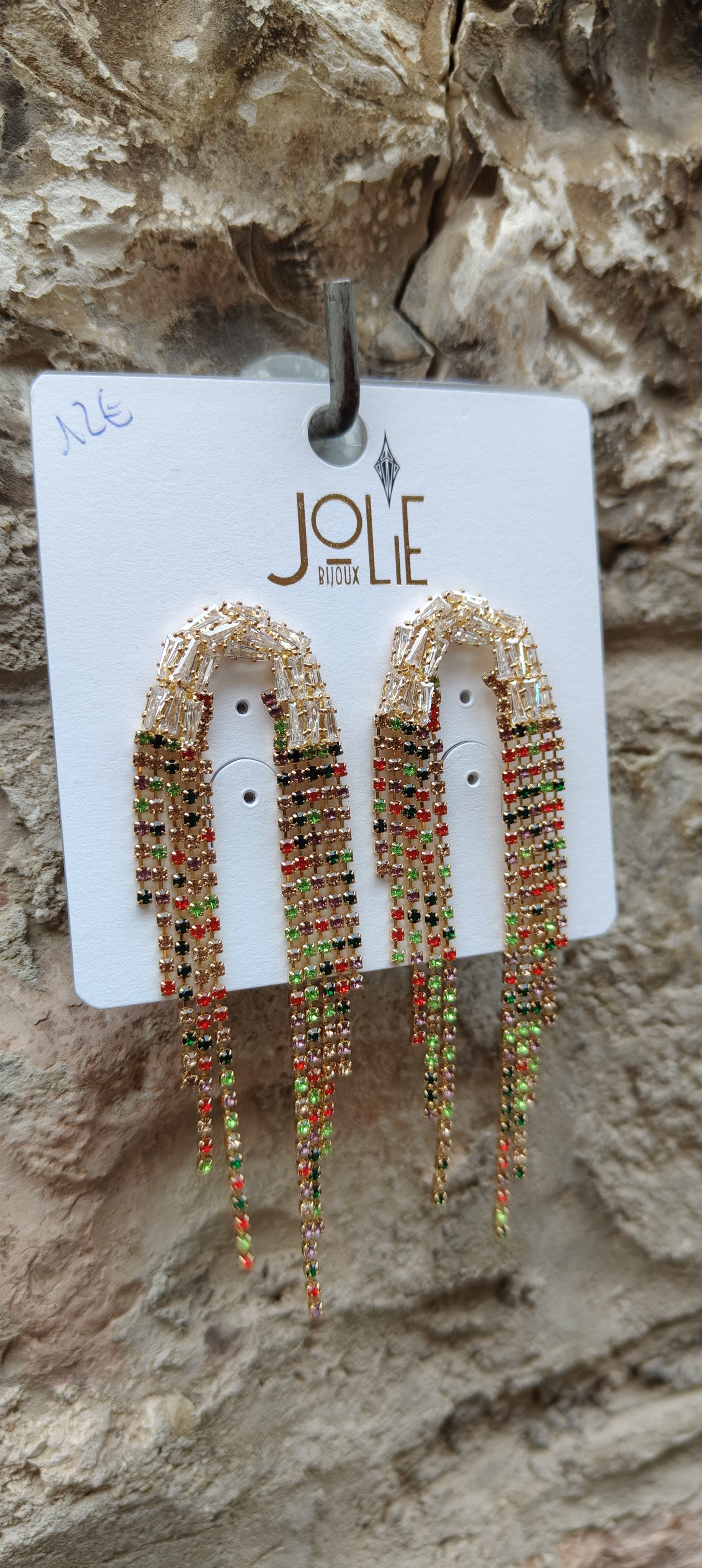 Orecchini con doppia fila di brillantini, sorretti da punti luce a baguette
