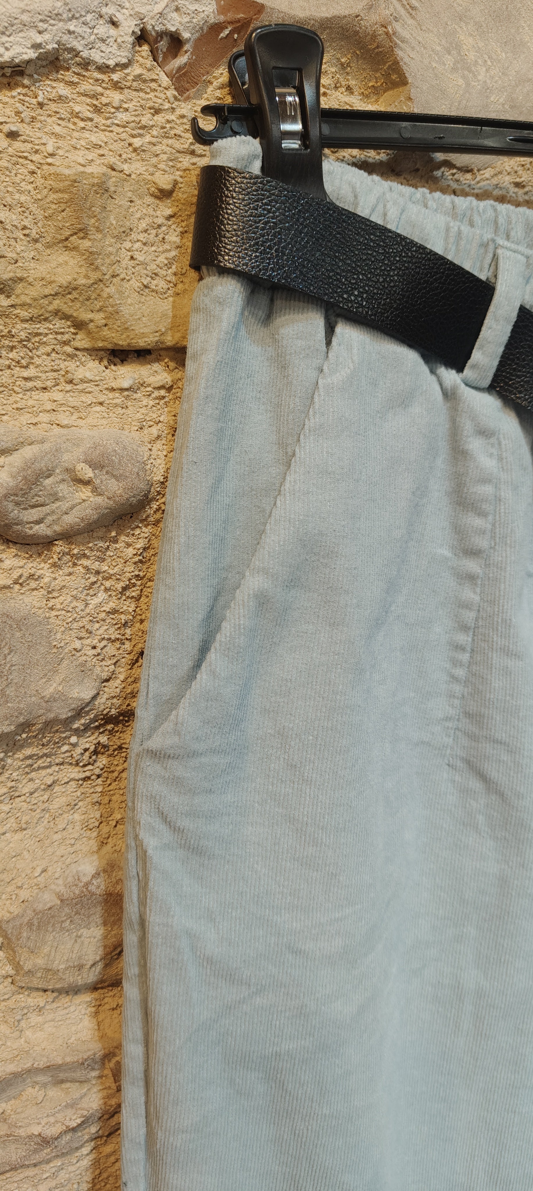 Pantalone in costine di velluto bianco, vita alta, con elastico in vita e cintura in dotazione