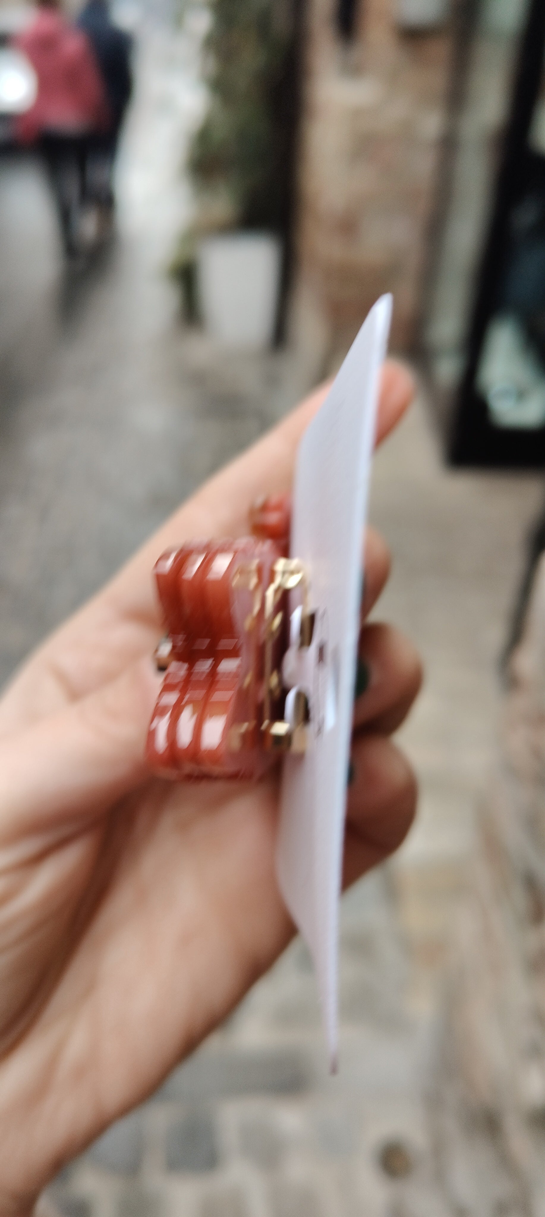 Spilla in resina, molto leggera. Perfetta da mettere su cappotti, borse, maglioni, camicie e cappelli.